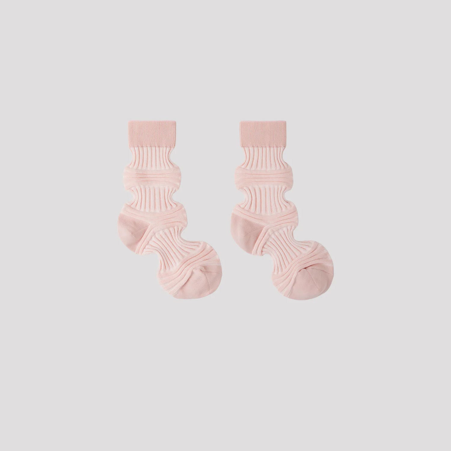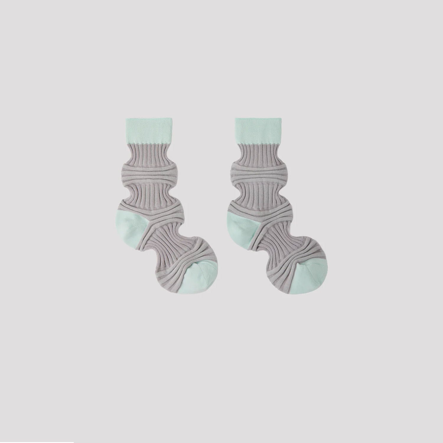 異なる2種類のリブを交互に組み合わせたユニークなシルエットが特徴のソックス。爪先やかかとなど負荷がかかる部分は再生ポリエステル、それ以外は汗を吸収しやすく肌触りのよいコットンを使用しています。見た目はユニークですが、着用するとスタイリングしやすいオーソドックスなシルエットになります。友人や大切な方への贈り物にもおすすめです。