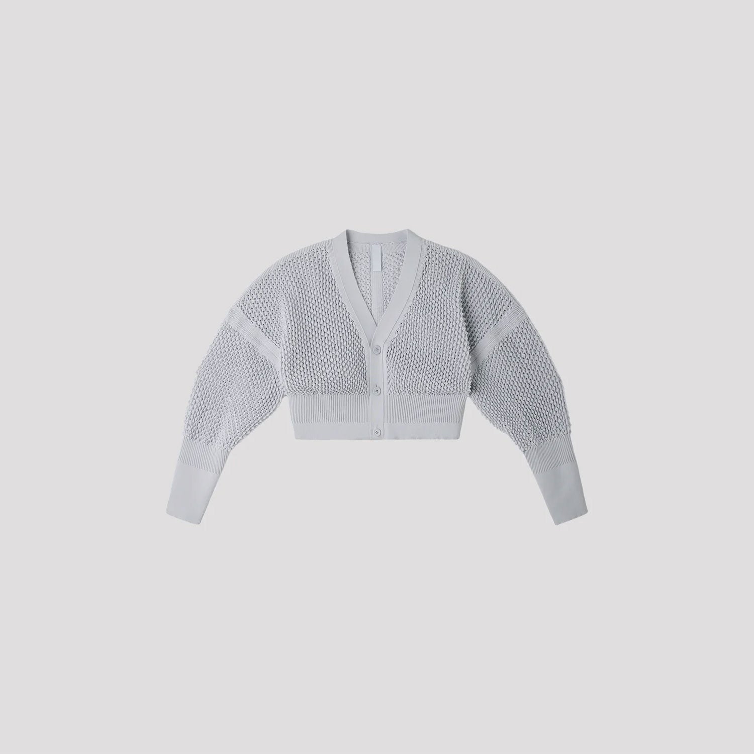 LATTICE CROPPED CARDIGAN-HAZE GRAY-