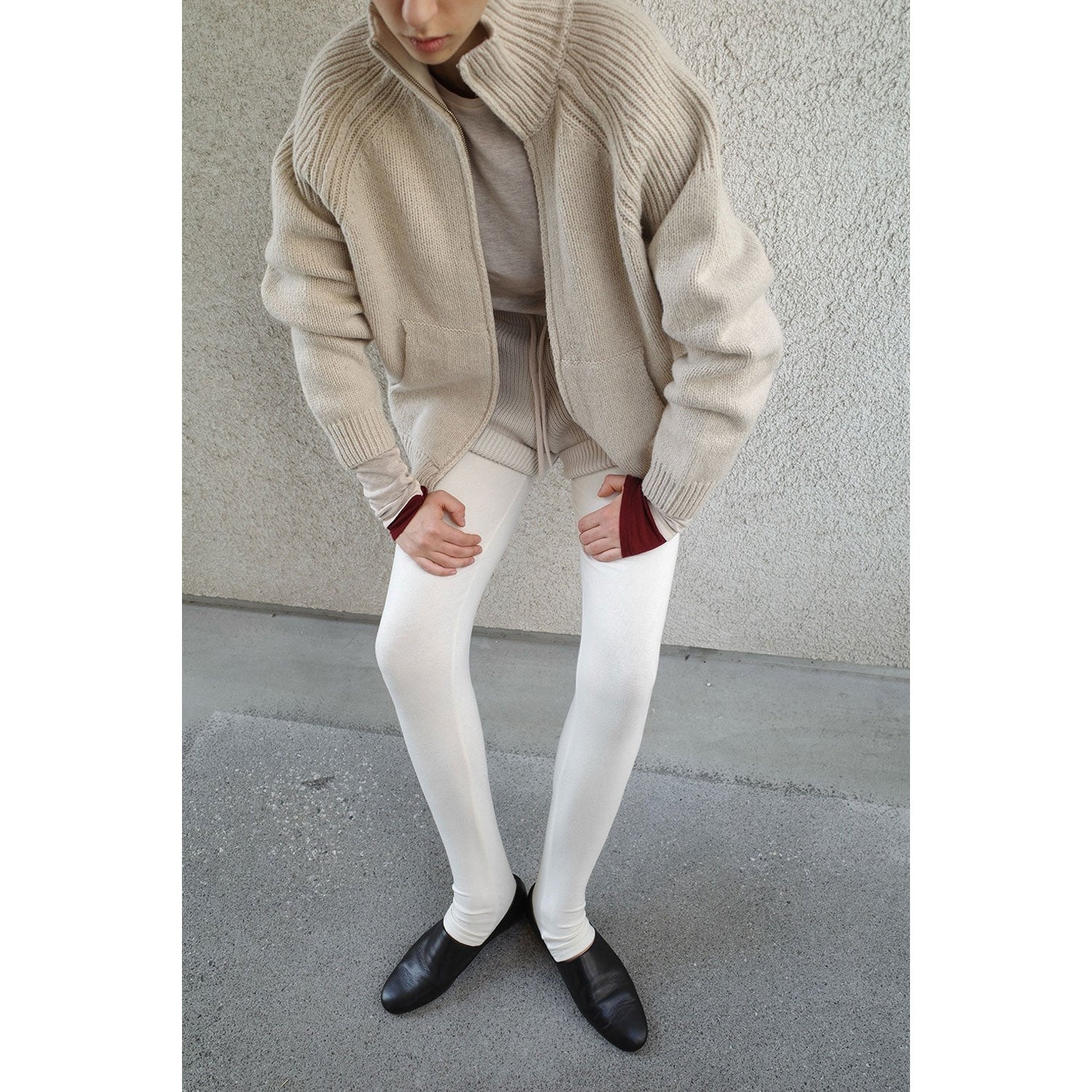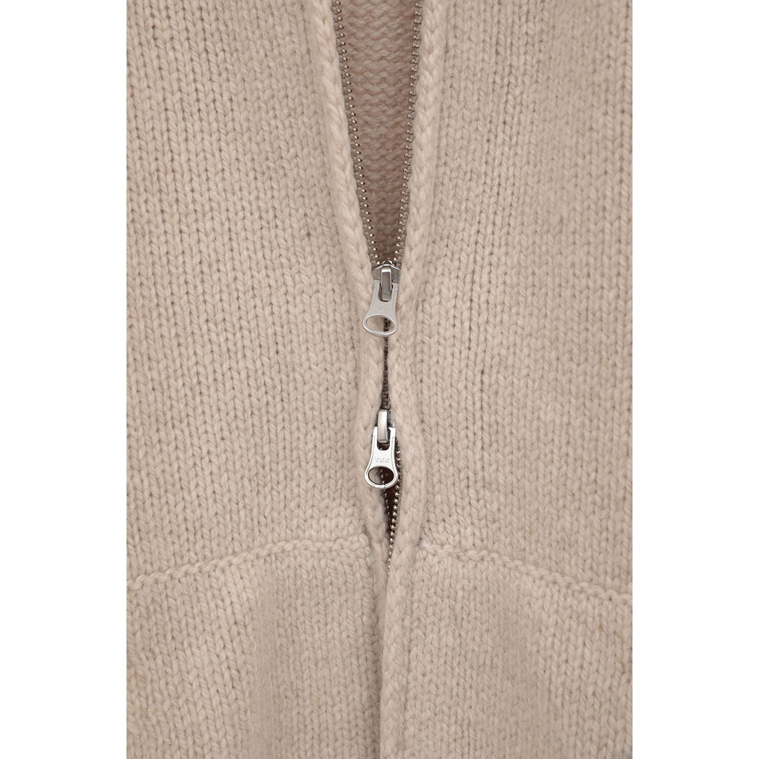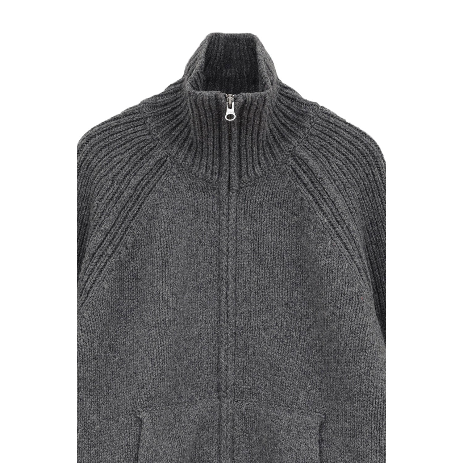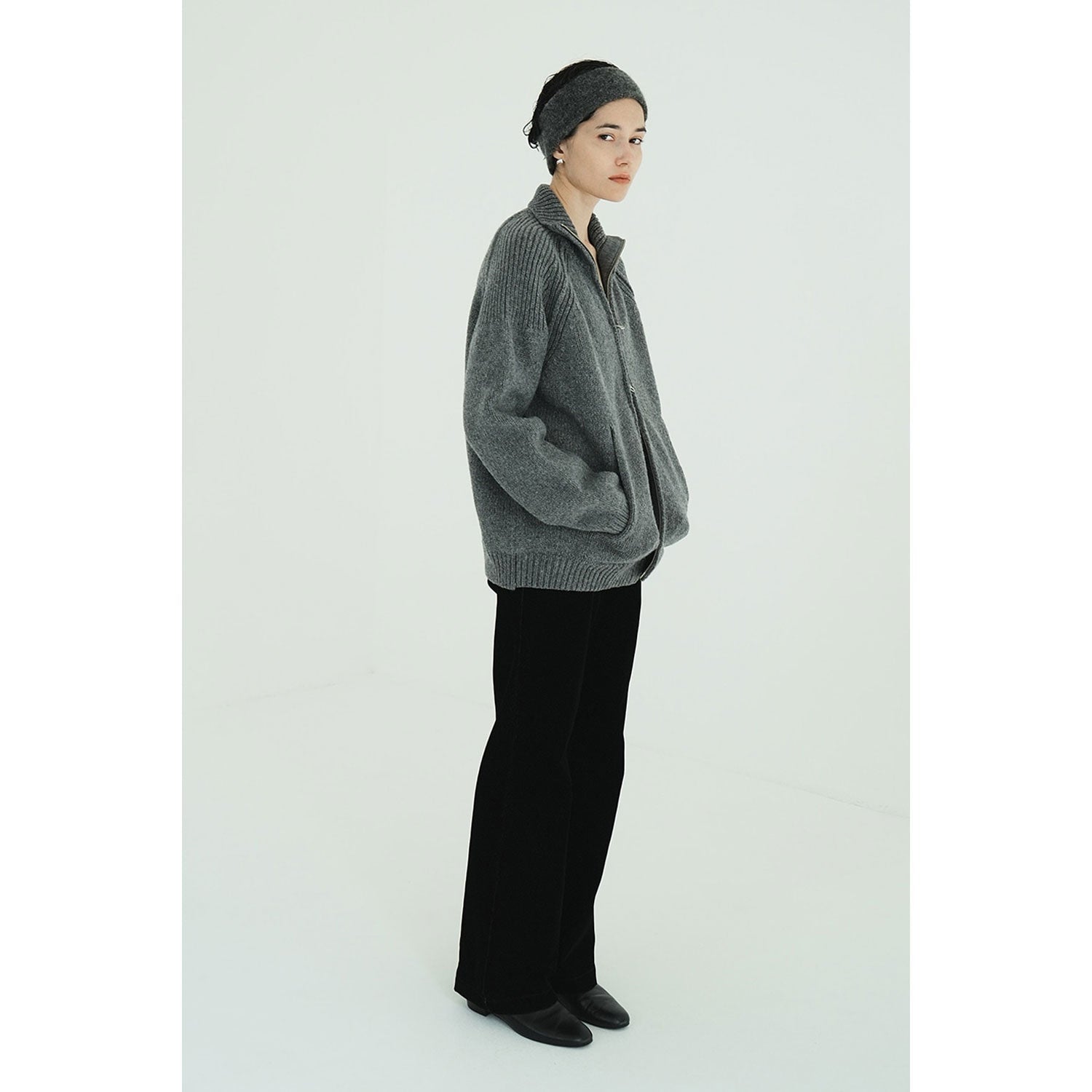 ウールより繊維が細く、しなやかな太番手のラムウールを度詰めで編み立てたジップニット。