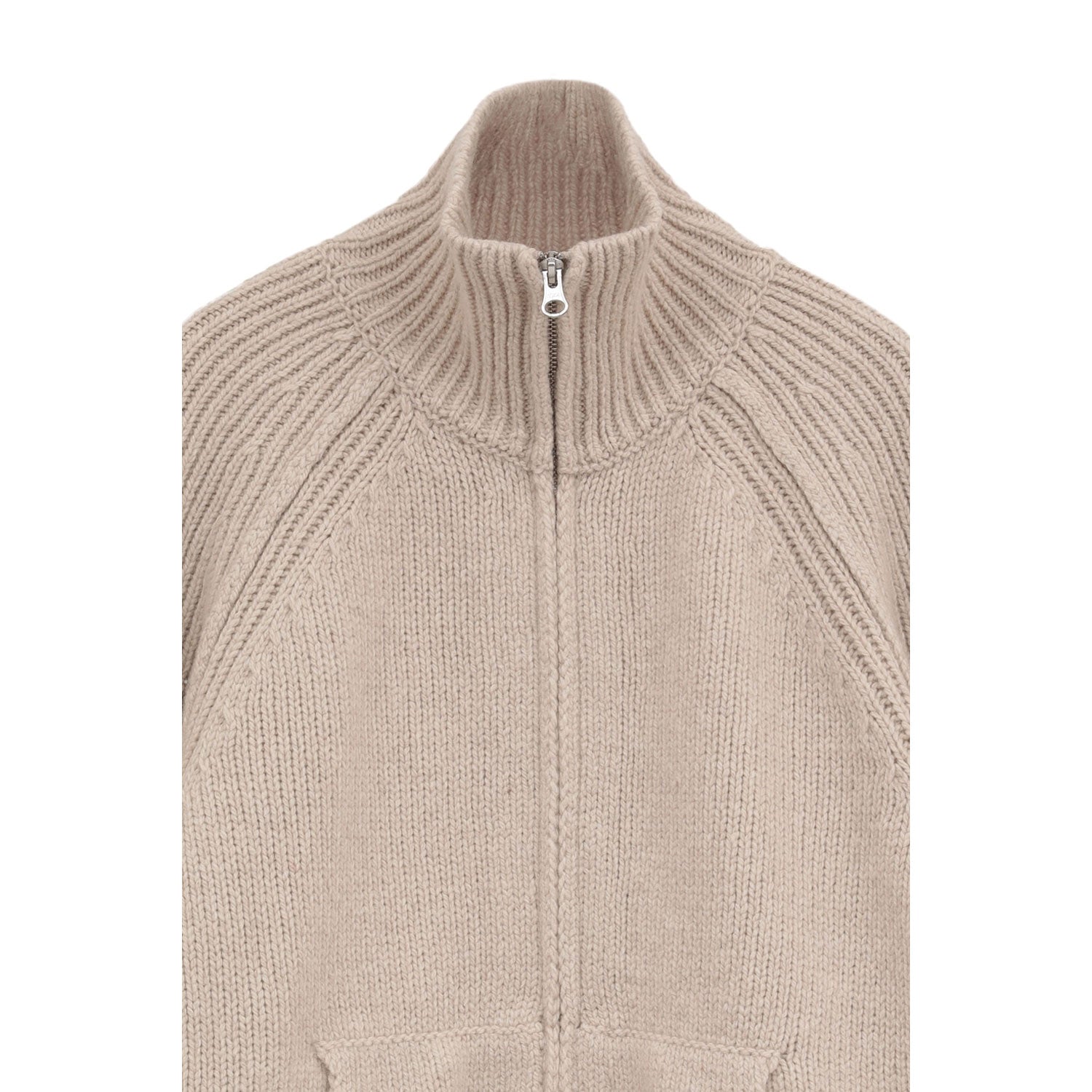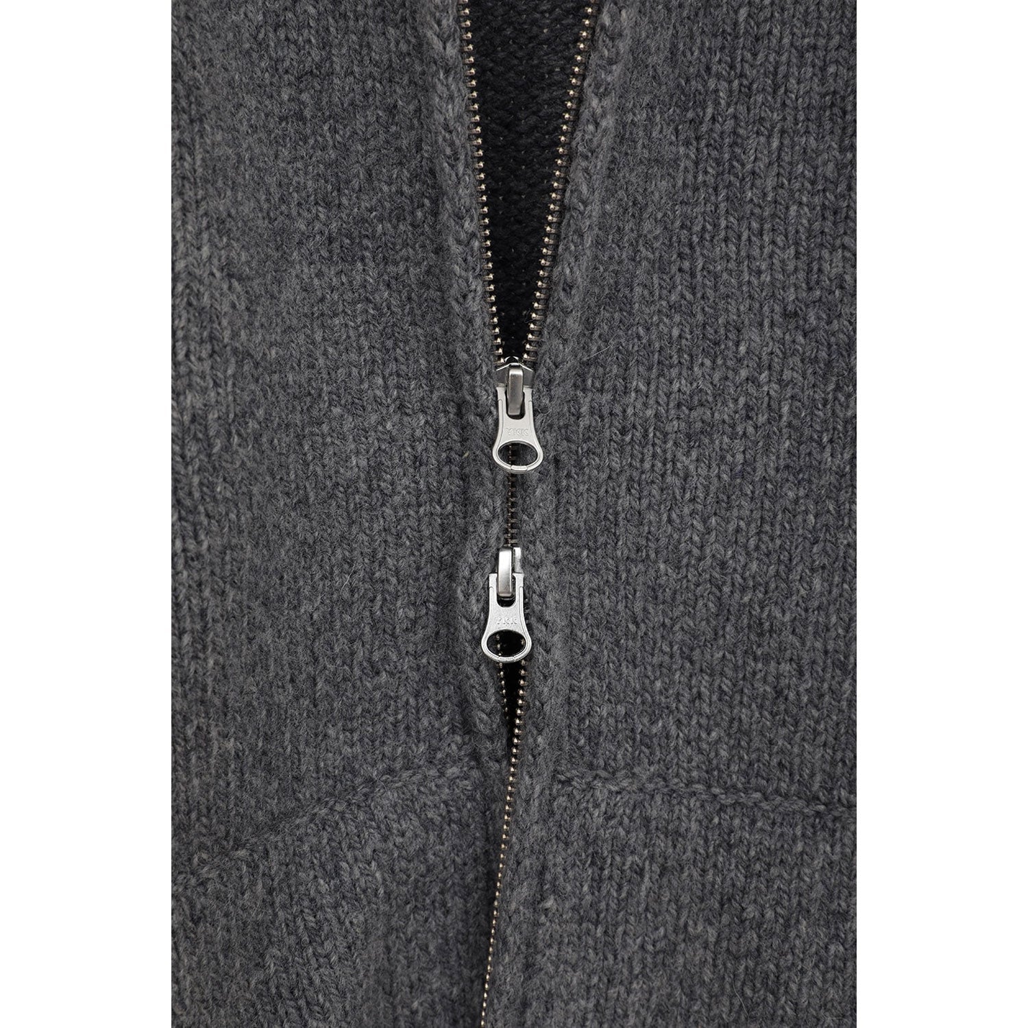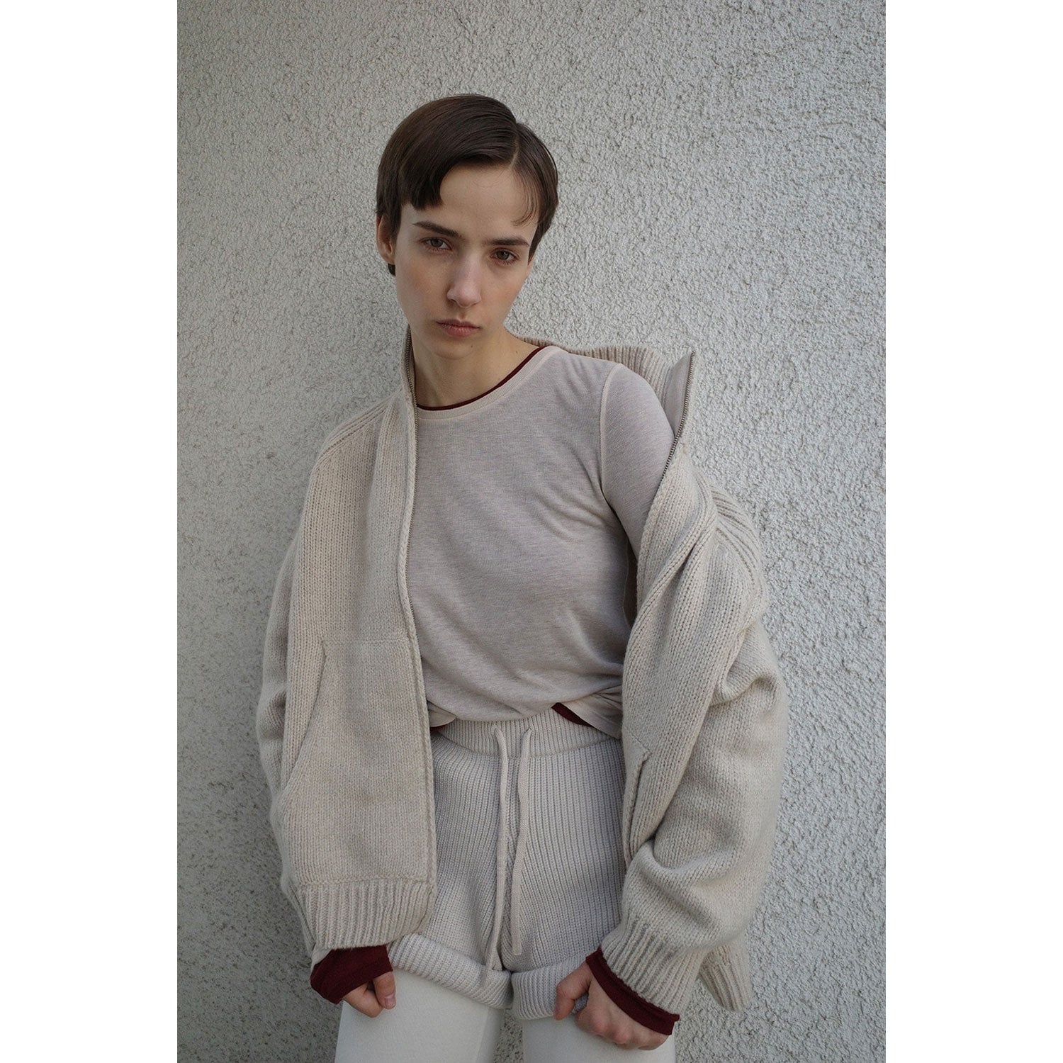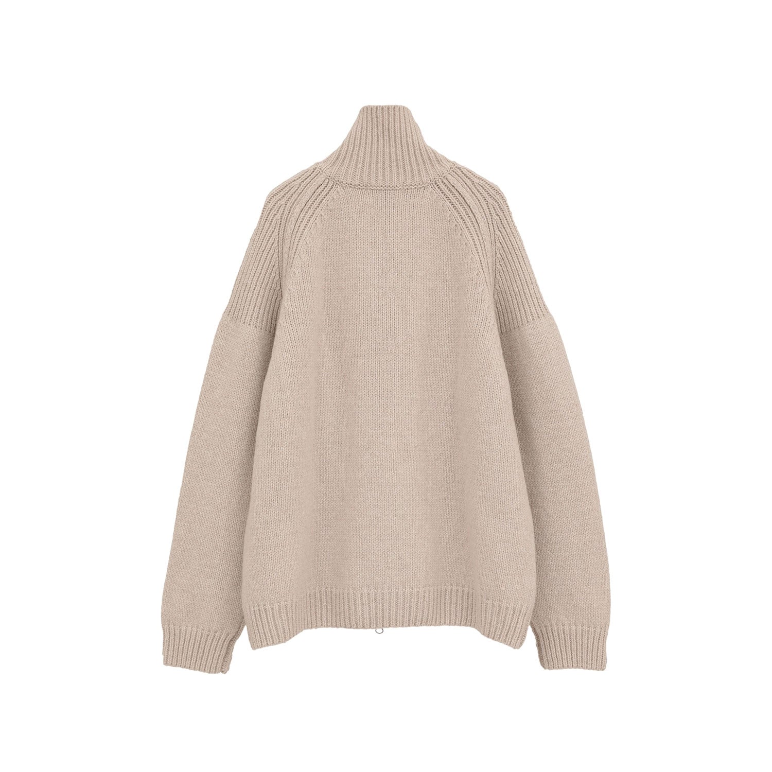 ウールより繊維が細く、しなやかな太番手のラムウールを度詰めで編み立てたジップニット。