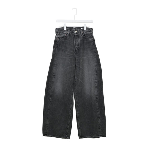 DENIM BARREL LEG JEANS -USED WASH(BLACK)-
