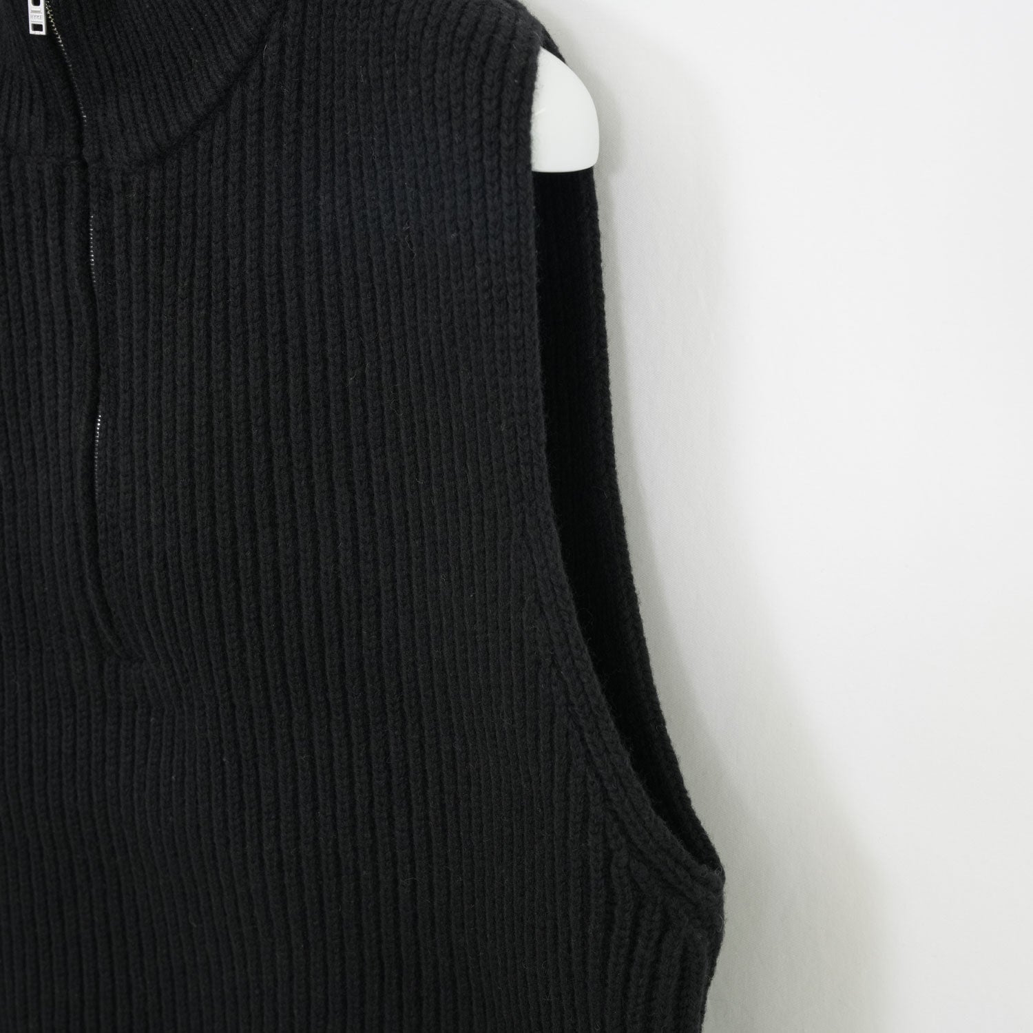 RIBBED KNIT WOOL VEST-CHACOAL-