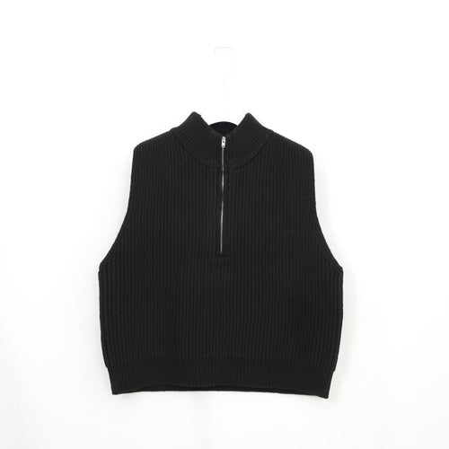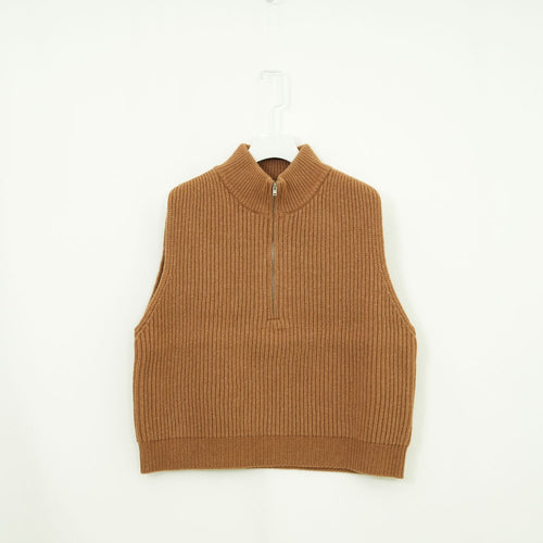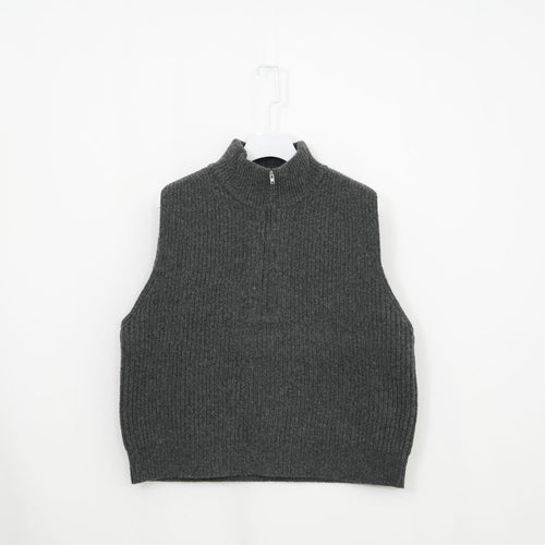 RIBBED KNIT WOOL VEST-CHACOAL-