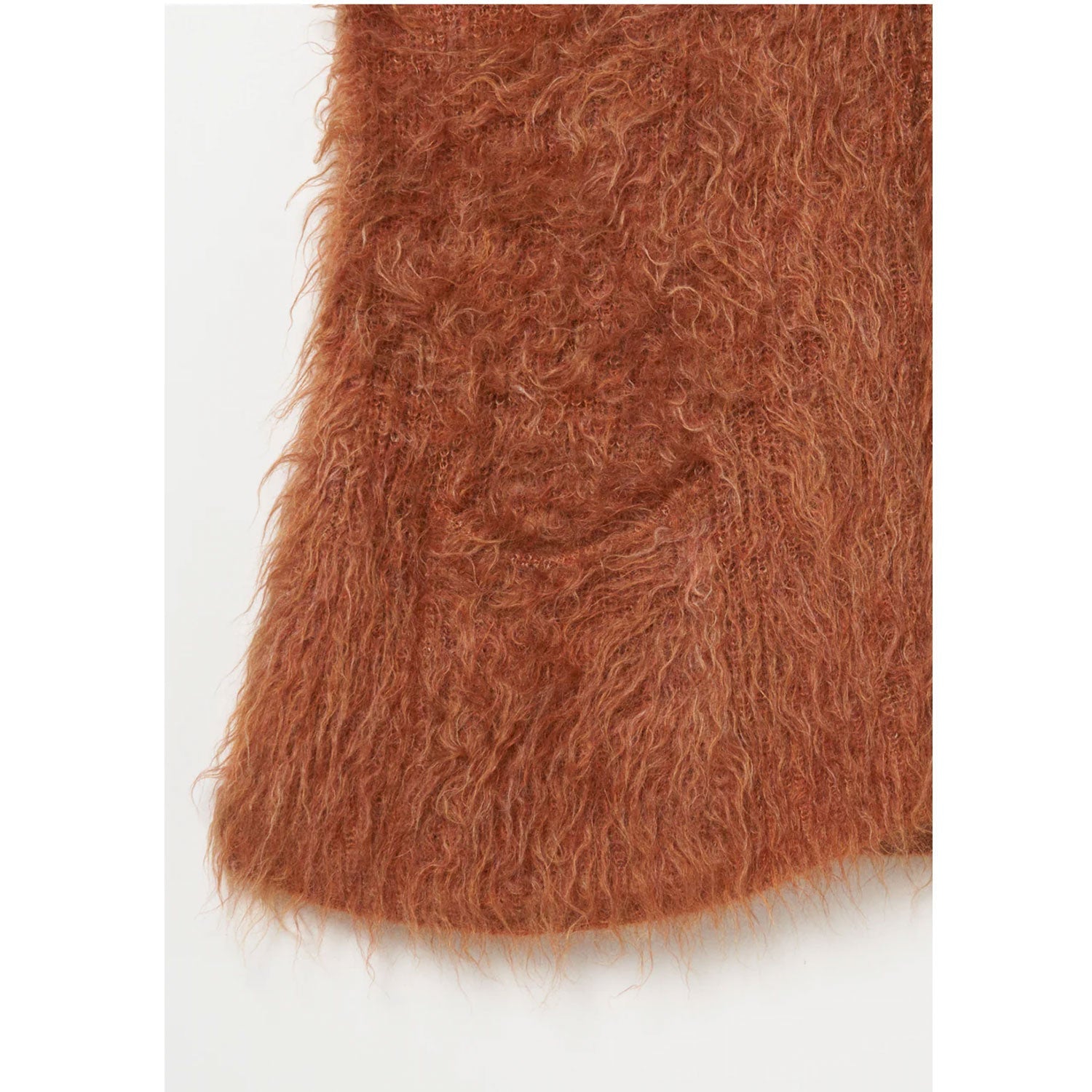 糸で起毛したモヘアにさらに特殊加工を施す事で、長い毛に毛束を出し、ヴィンテージのような雰囲気のある素材に仕上げました。