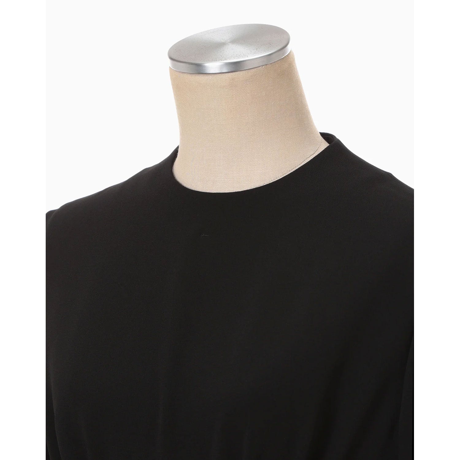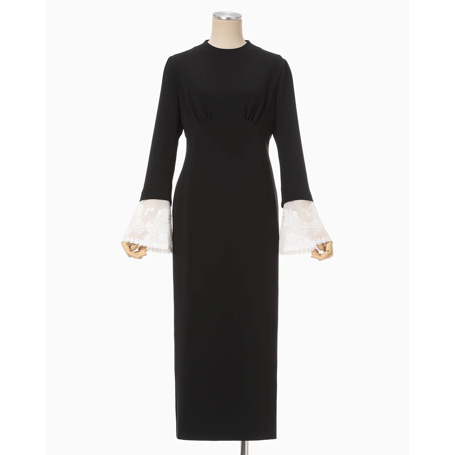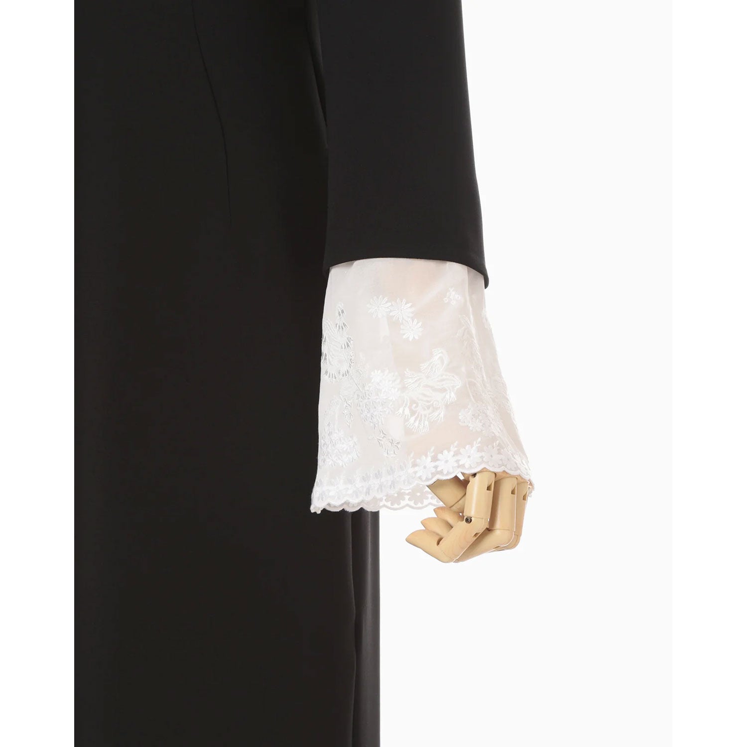 Triacetate Georgette Embroidered Cuffs I-Line Dress - black