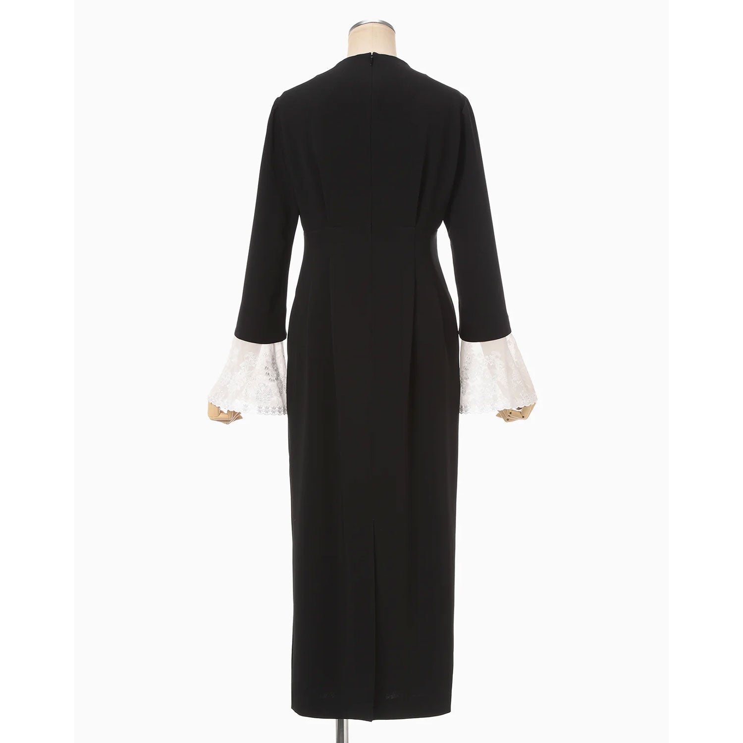 裾のスリットがセンシュアルなアクセントをプラスするレースカフスドレス。