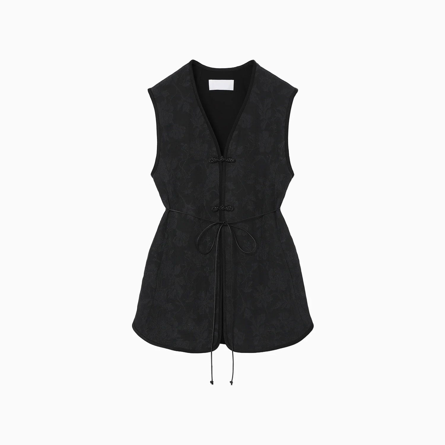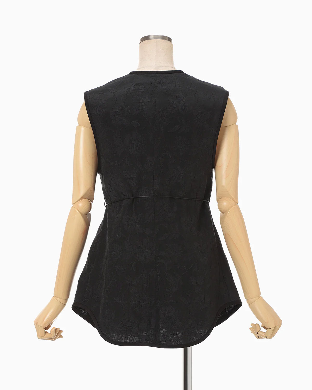 やわらかな光沢が上品な印象を与える花柄ベスト。