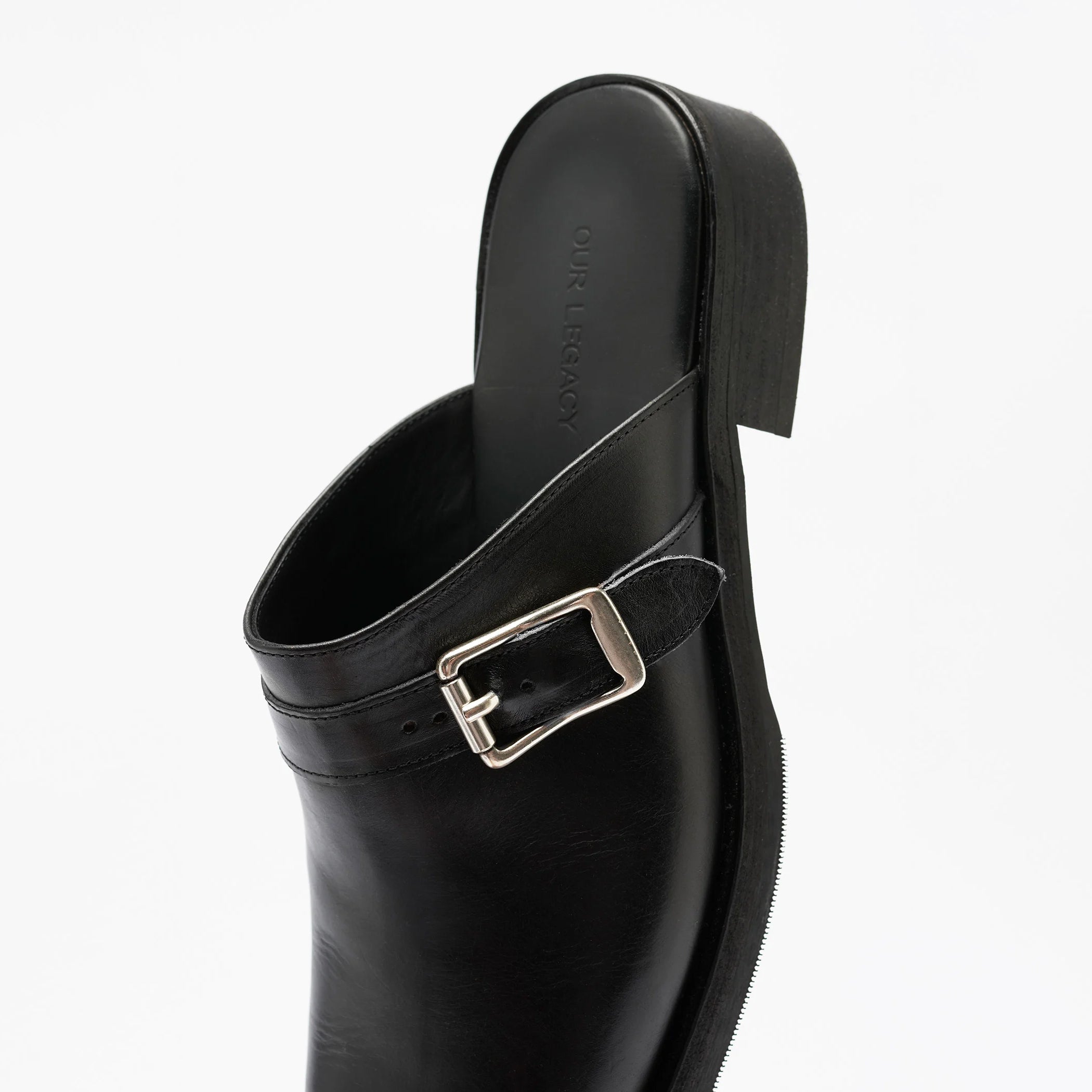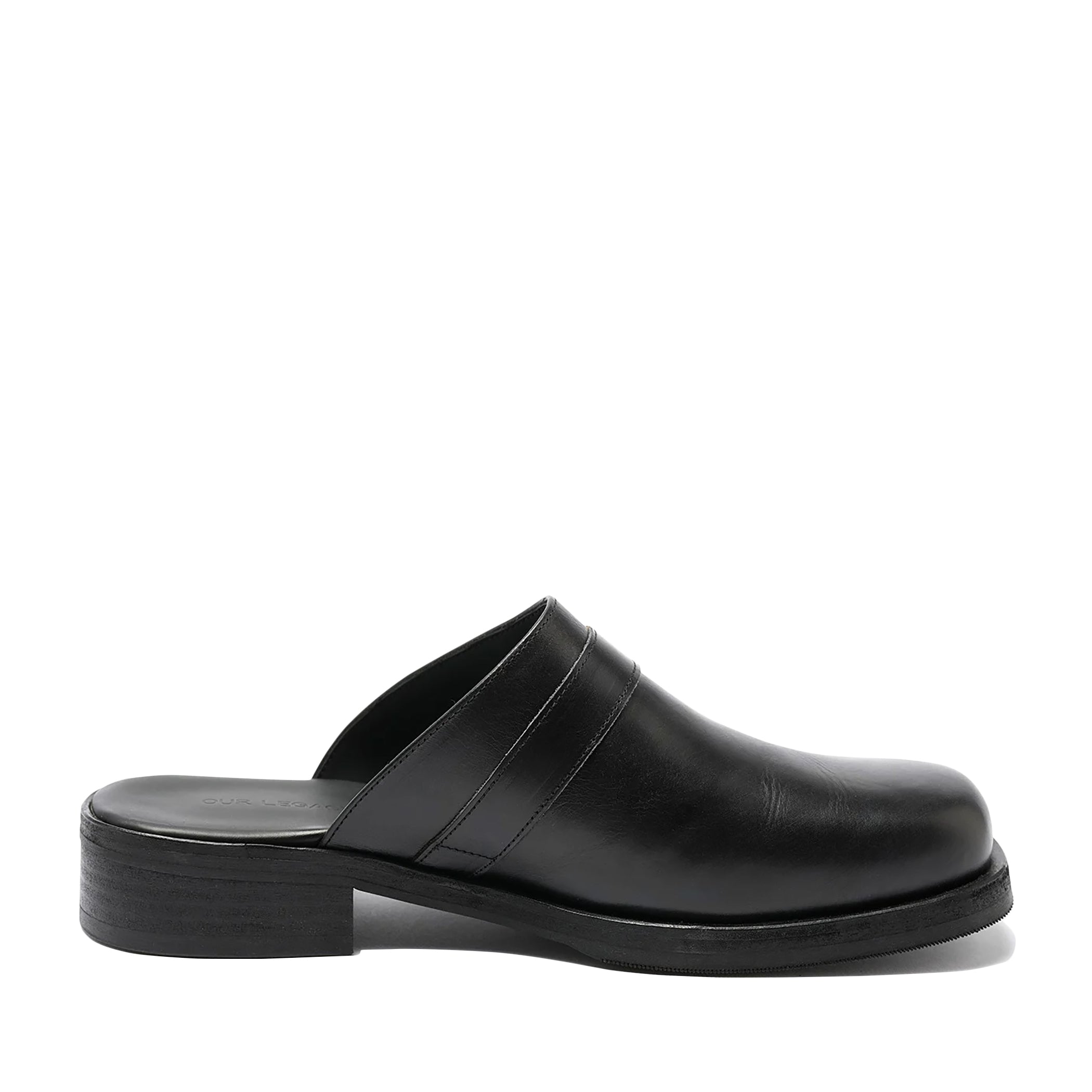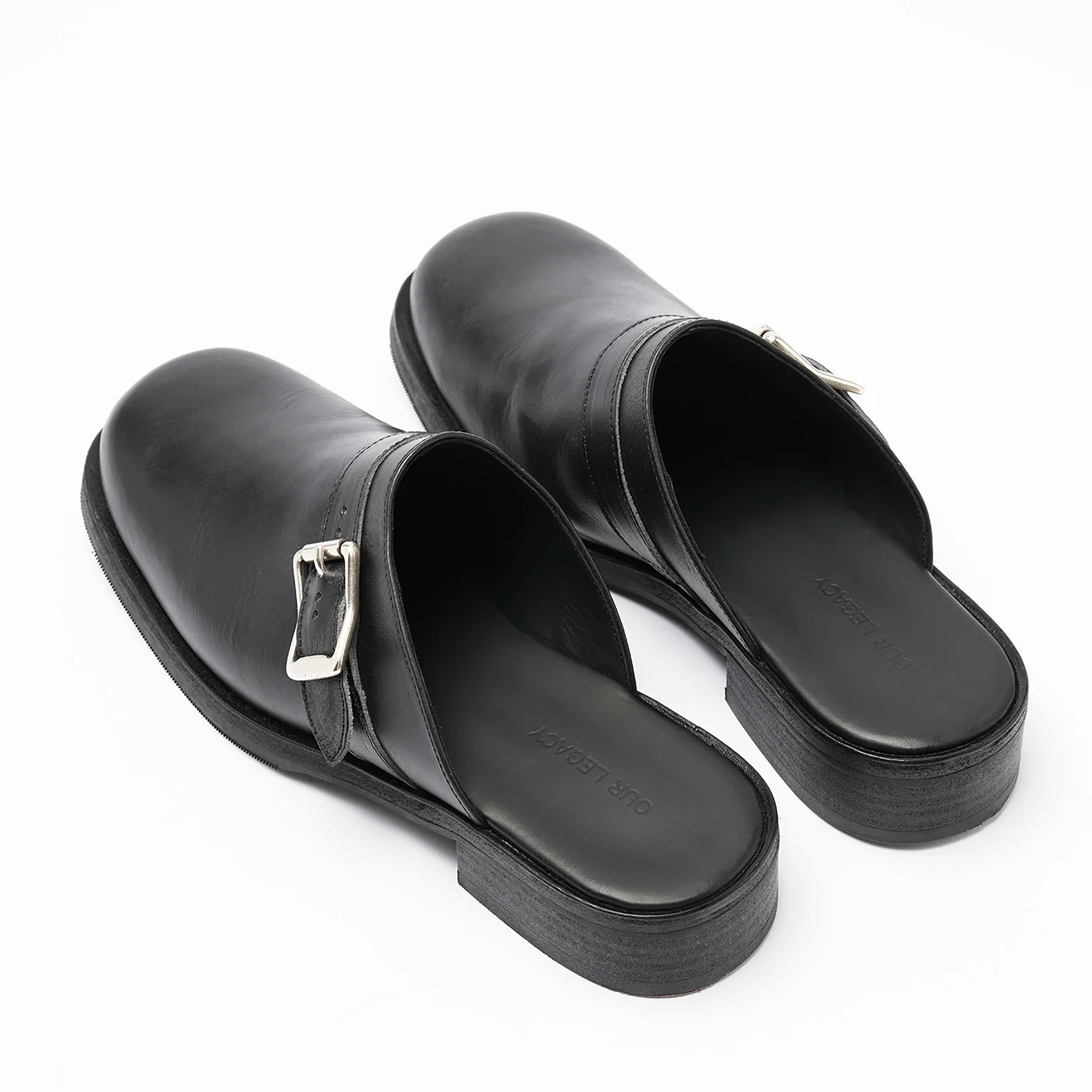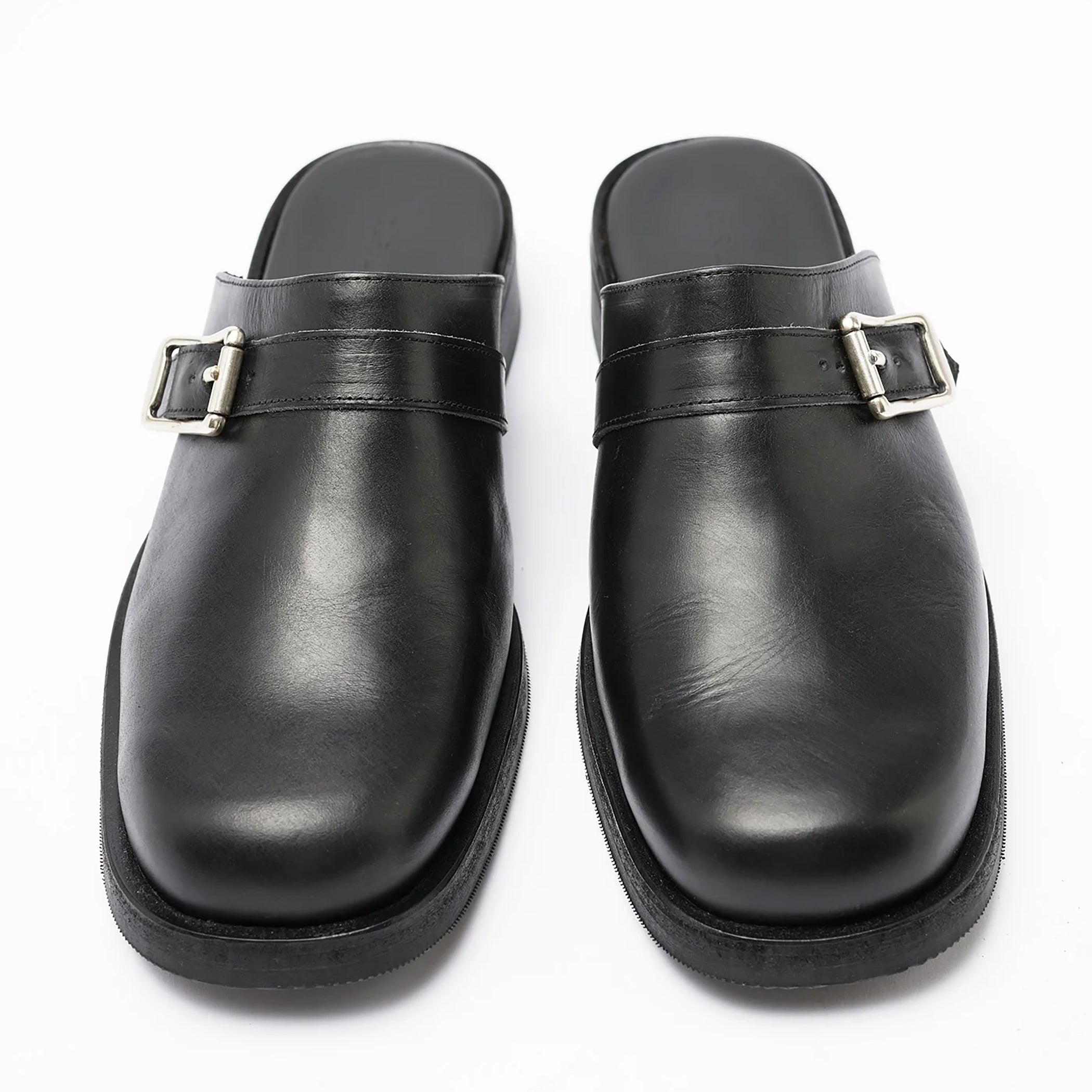 OUR LEGACYの定番モデルをミュール仕様に仕上げた「CAMION MULE」。上質なポルトガル製ブラックレザーを用い、滑らかな質感と重厚な存在感を併せ持つ一足です。ビブラムアウトソールとレザーキルガーミッドソールが安定した履き心地をもたらし、クロスオーバーストラップには真鍮バックルを採用。シンプルなフォルムに確かな機能性とクラフトマンシップが宿る、日常のスタイリングを品よく引き締めるミュールです。