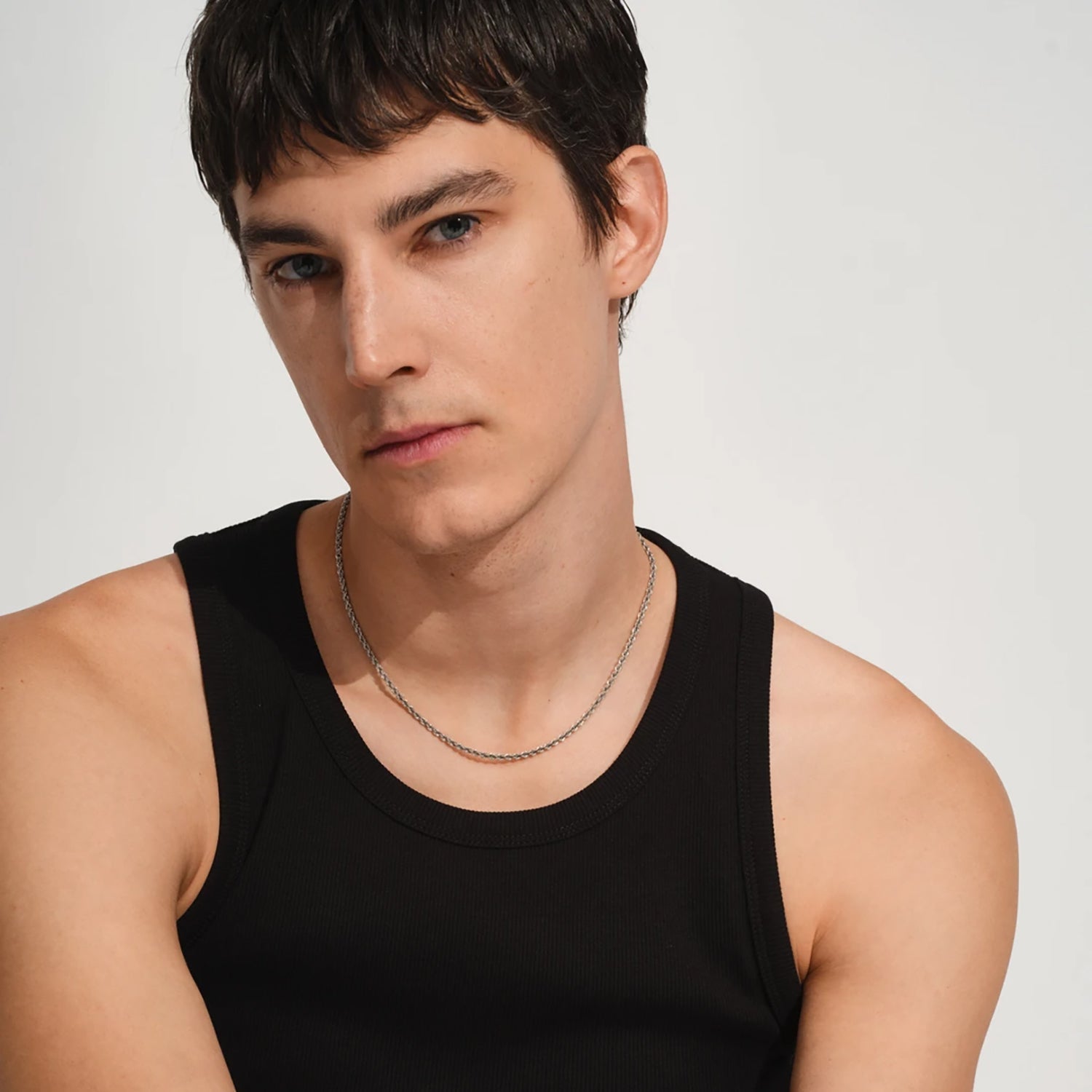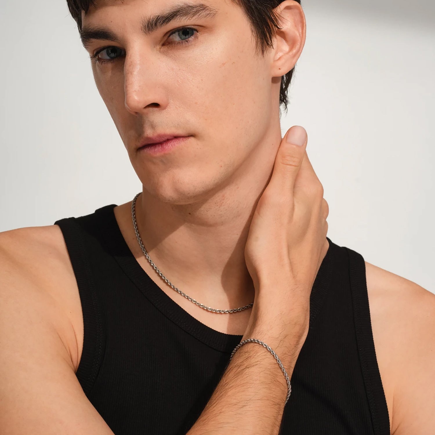 ROPE CHAIN は、密に絡み合うリンクが生み出す立体的な質感が魅力のチェーンネックレスです。繊細でありながら確かな存在感を備え、クラシックなトムウッドのバレルクラスプが洗練されたアクセントを添えています。素材には、磨き上げたスターリングシルバー925を使用し、表面にはホワイトロジウムメッキを施すことで、美しい輝きを保ちながら変色を抑える仕様に。さらに、使用する貴金属はすべて100%リサイクル素材を採用しており、サステナブルな視点にも配慮した一本です。