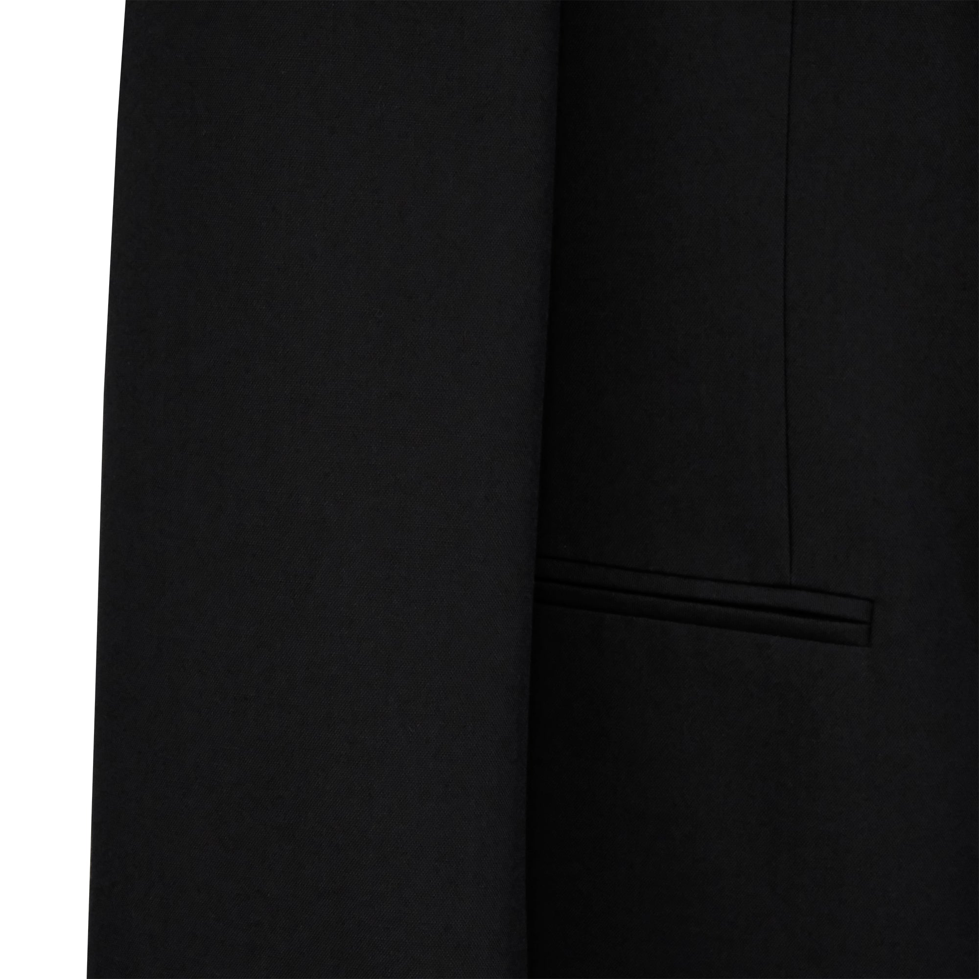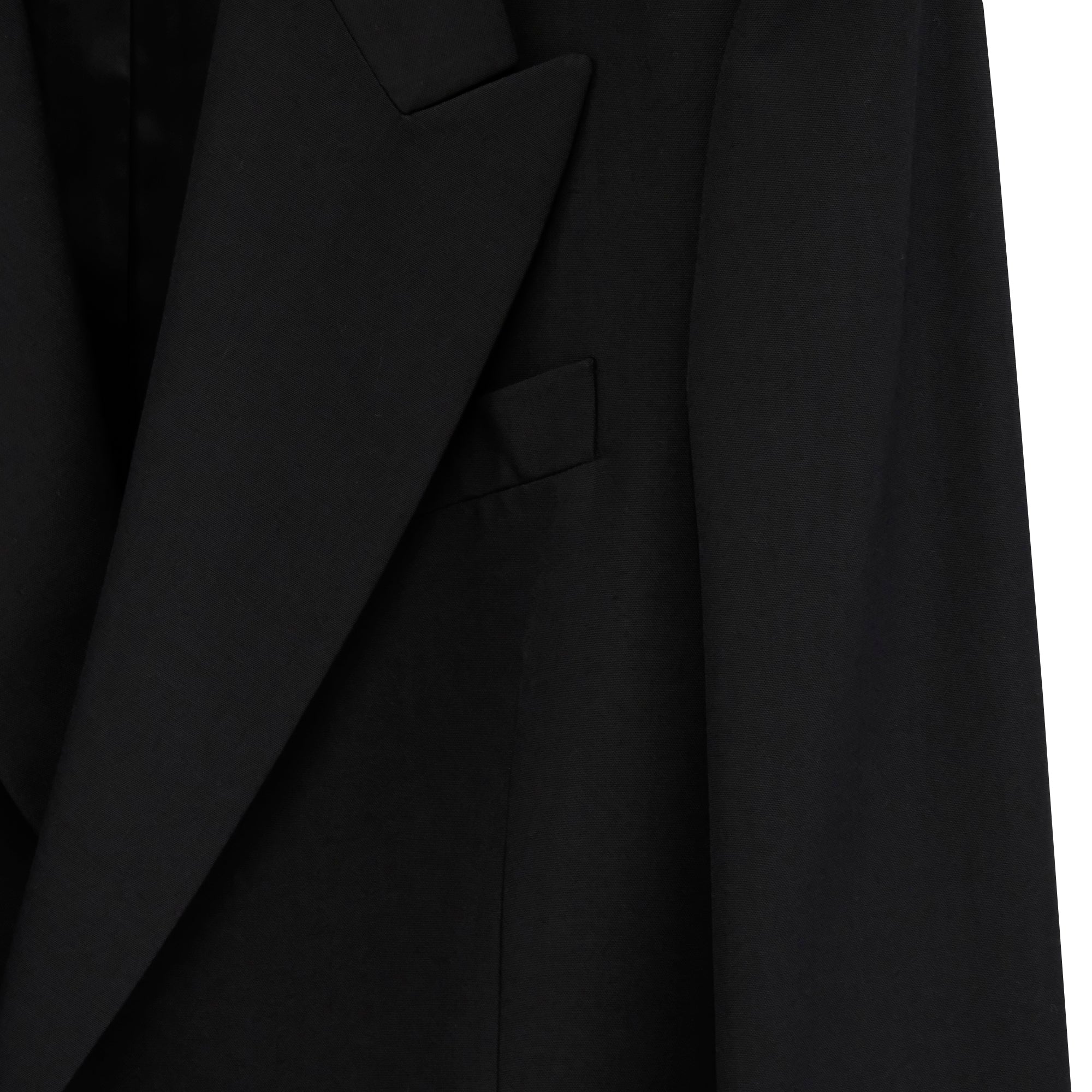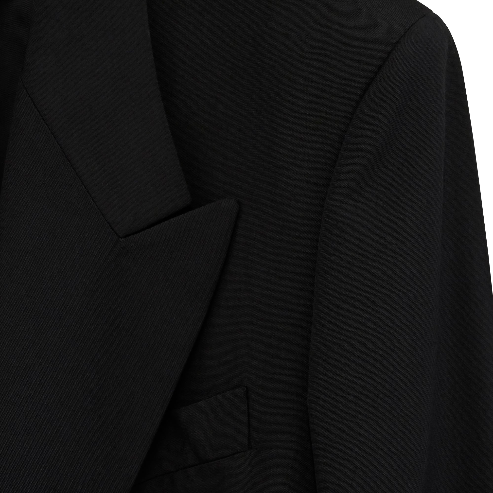 構築美が際立つ、ウールブレンド素材のダブルブレストジャケット。軽やかなウールブレンドファブリックを使用し、シーズンを問わず洗練されたスタイルを演出します。パッド入りのショルダーと肩幅を広く取ったカッティングにより、彫刻的で存在感のあるシルエットを形成。無駄を削ぎ落としたクリーンなラインが、ミニマルでありながら力強い印象を与えます。バックスタイルには、MM6を象徴する1本の白いステッチを配置。控えめながらもブランドのアイデンティティを感じさせるディテールが、デザインに静かな個性を添えています。