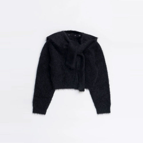Alpaca Blend 2-Way Hoodie-BLACK-