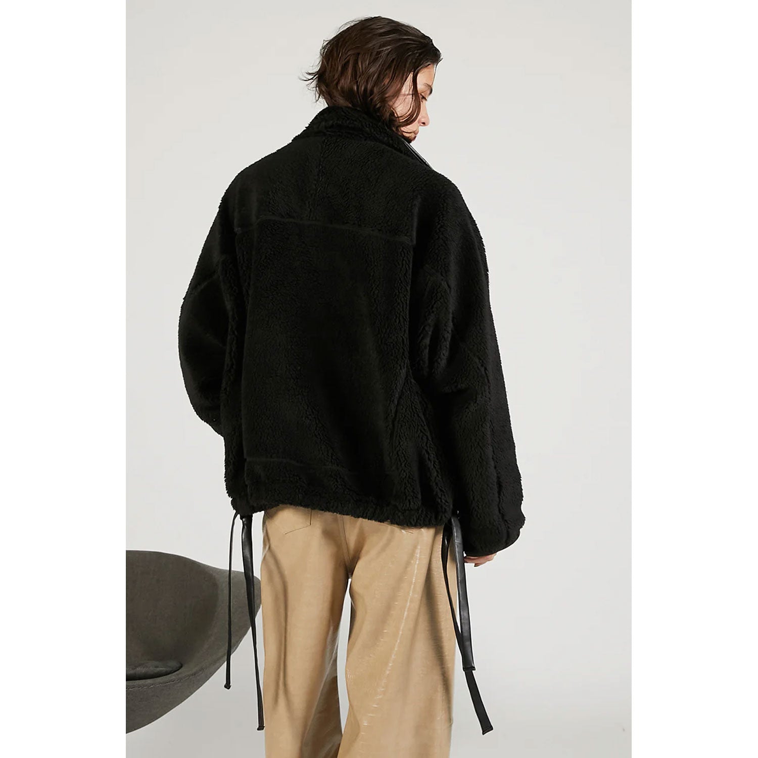 メタルファスナーやフェイクレザーのトリミングでエッジを効かせているのもポイント。