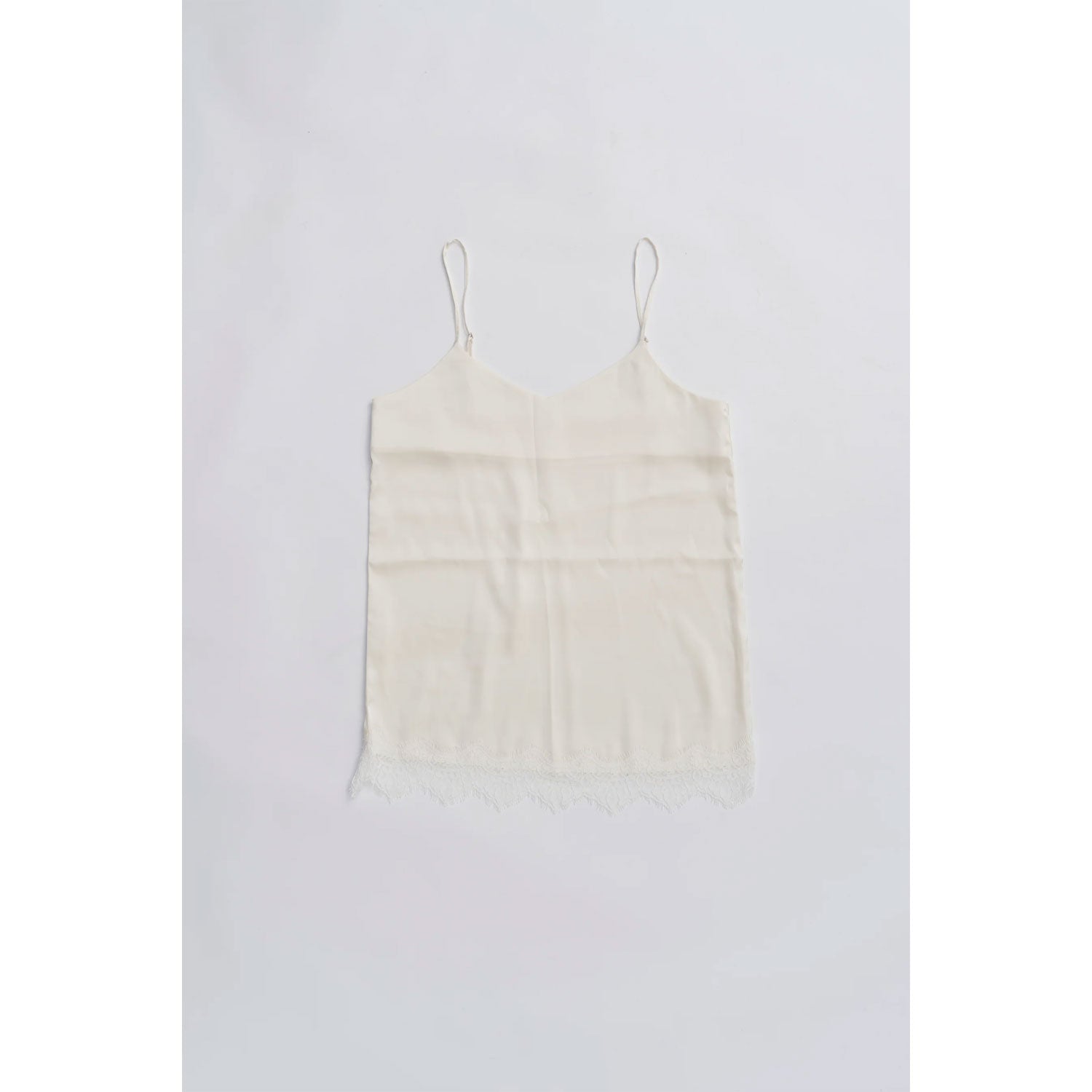 サテンのスリップドレスのみを別のアイテムと組み合わせることも可能。