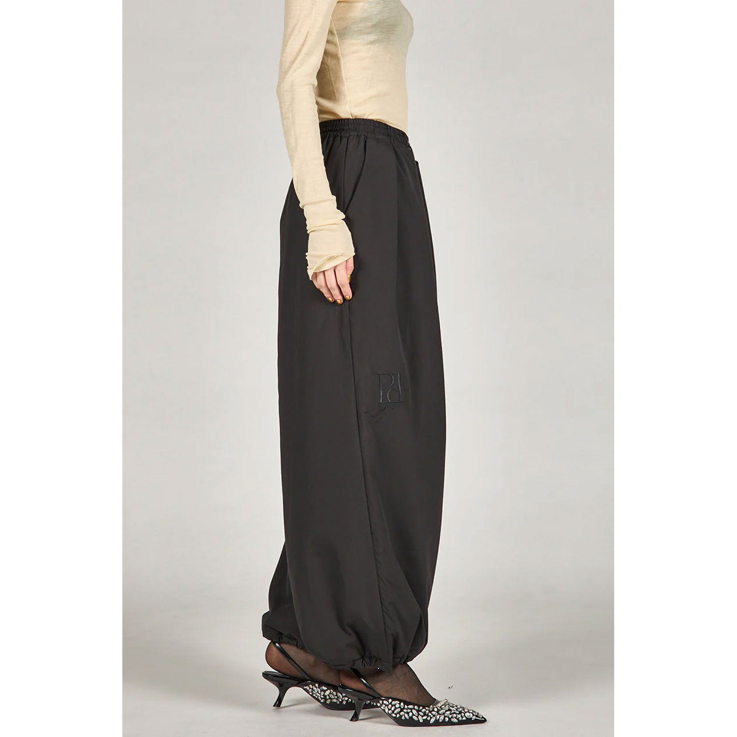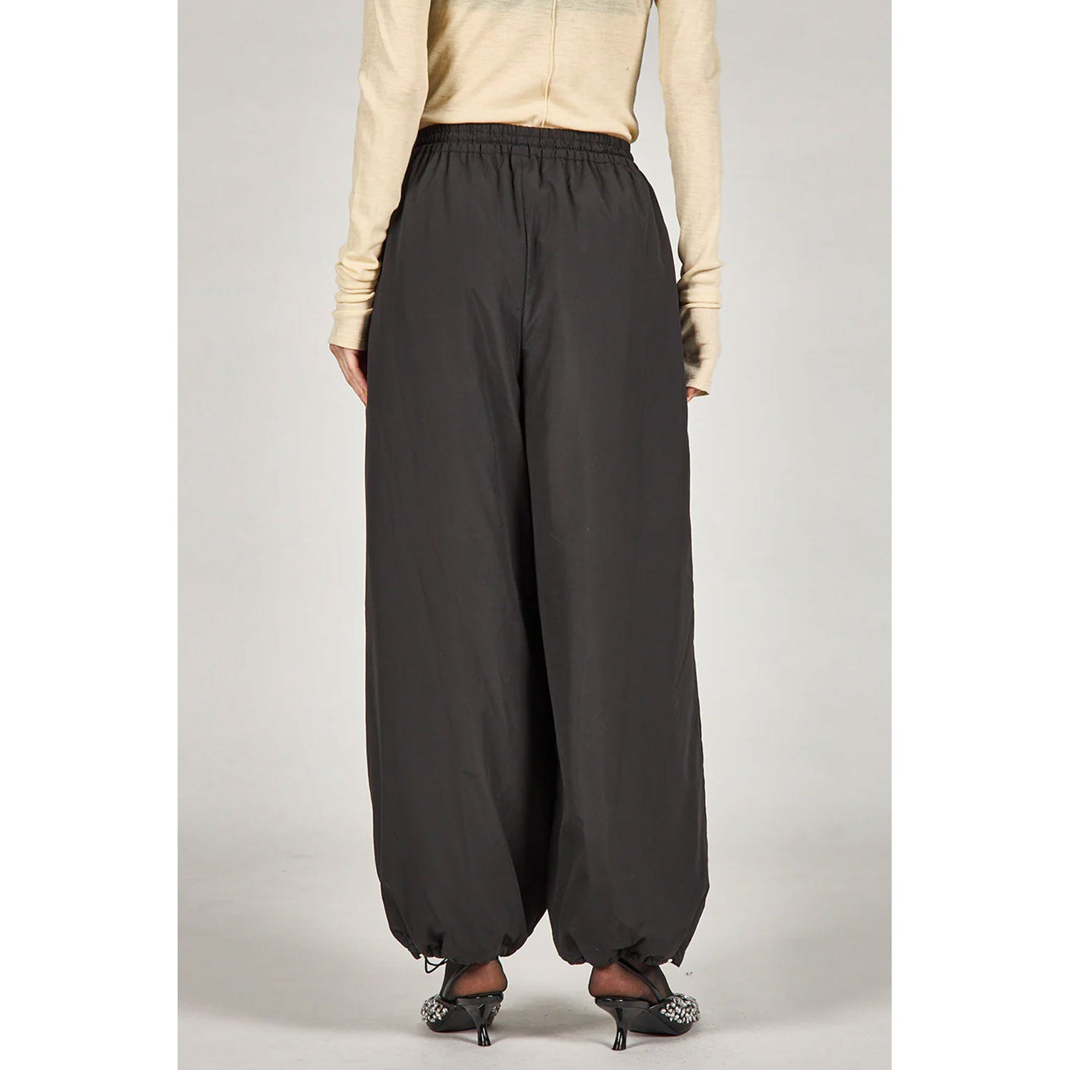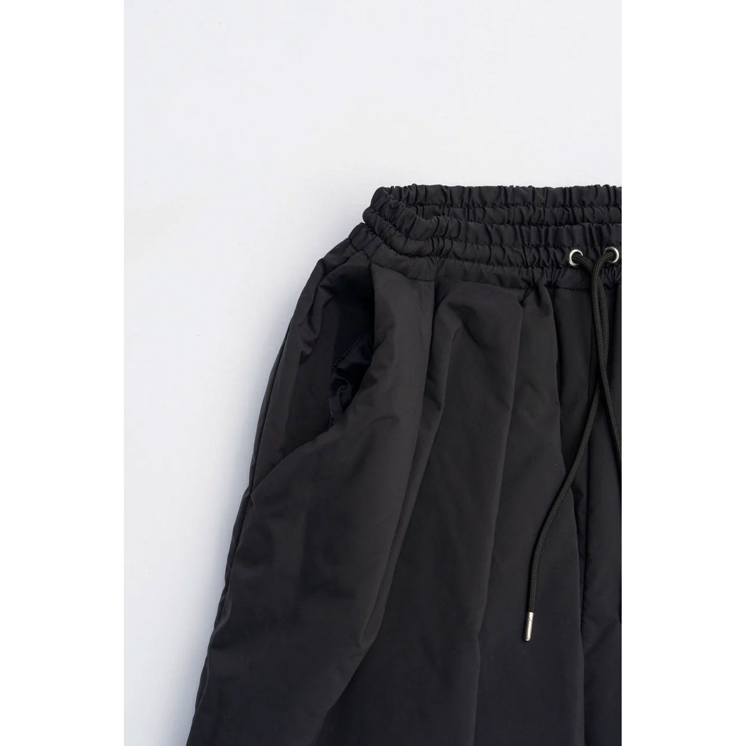 裾のドロストを絞ることで、バルーンシルエットがより強調できる仕様。