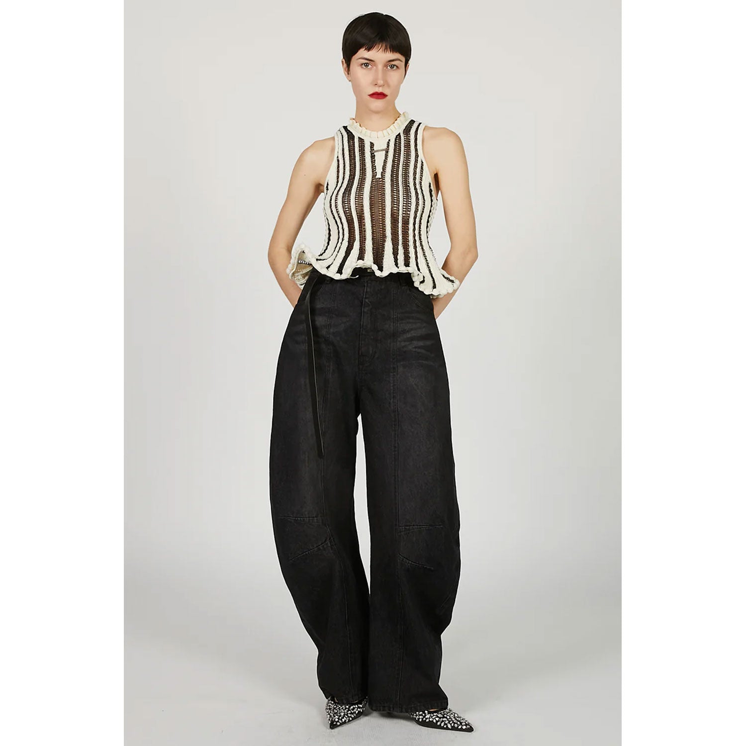 超ワイドなボリューム感のコクーンシルエットデニムパンツ。
