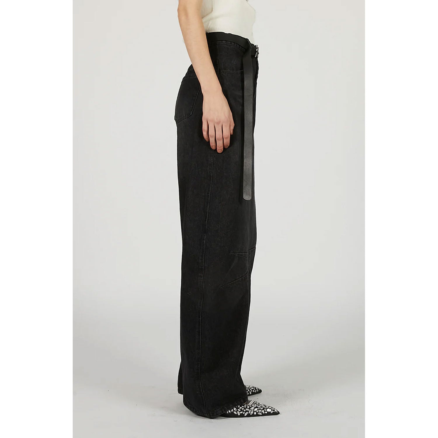 厚みのあるデニムを使用し、特徴的なシルエットをさらに強調している。