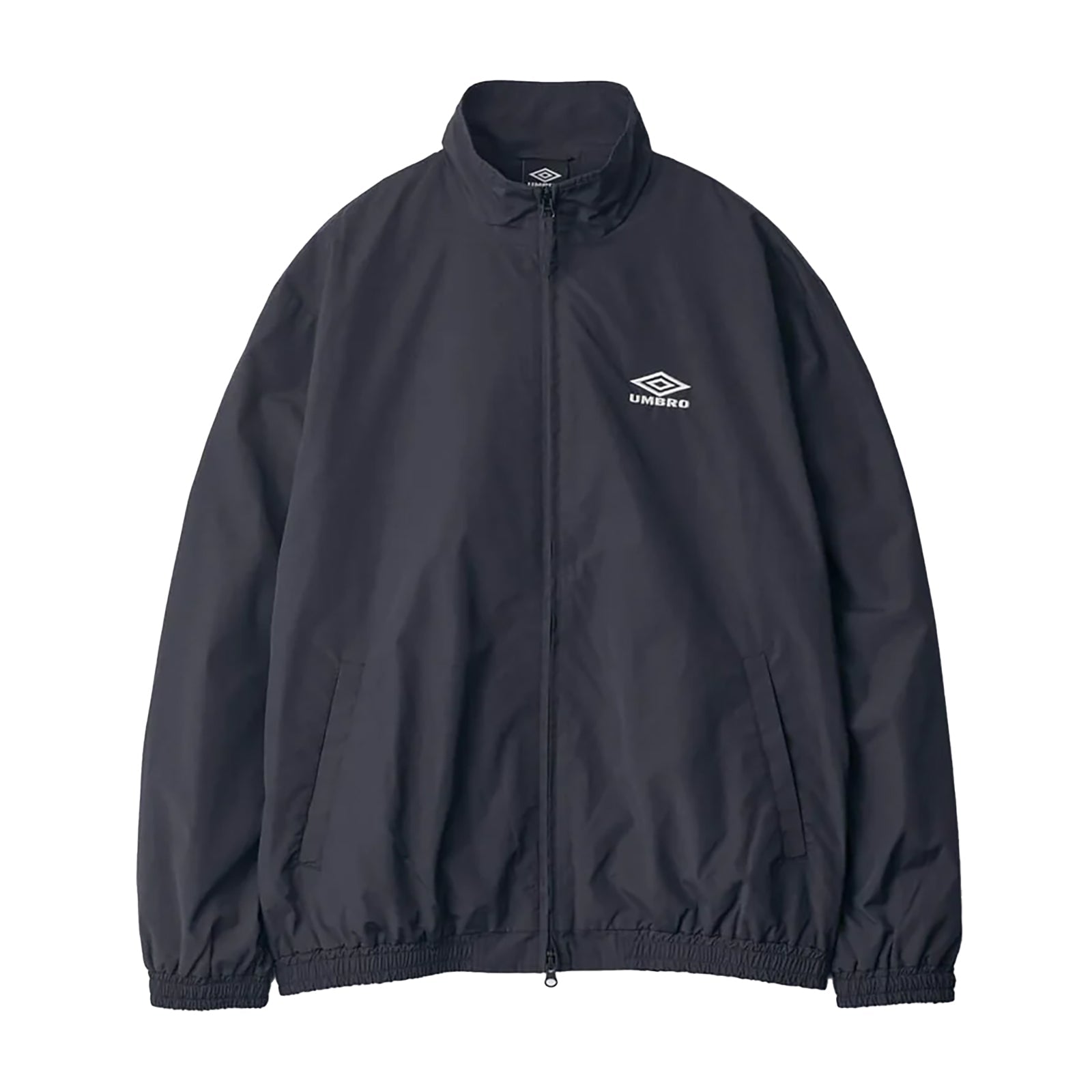 控えめな光沢とコットンのナチュラルな質感が特徴のナイロンコットンダンプ地を使用したトラックジャケット。染色性の高いナイロンならではの発色の良さもポイント。撥水加工も施されている。左胸、ネック後ろ部分にUMBROのロゴが入る。