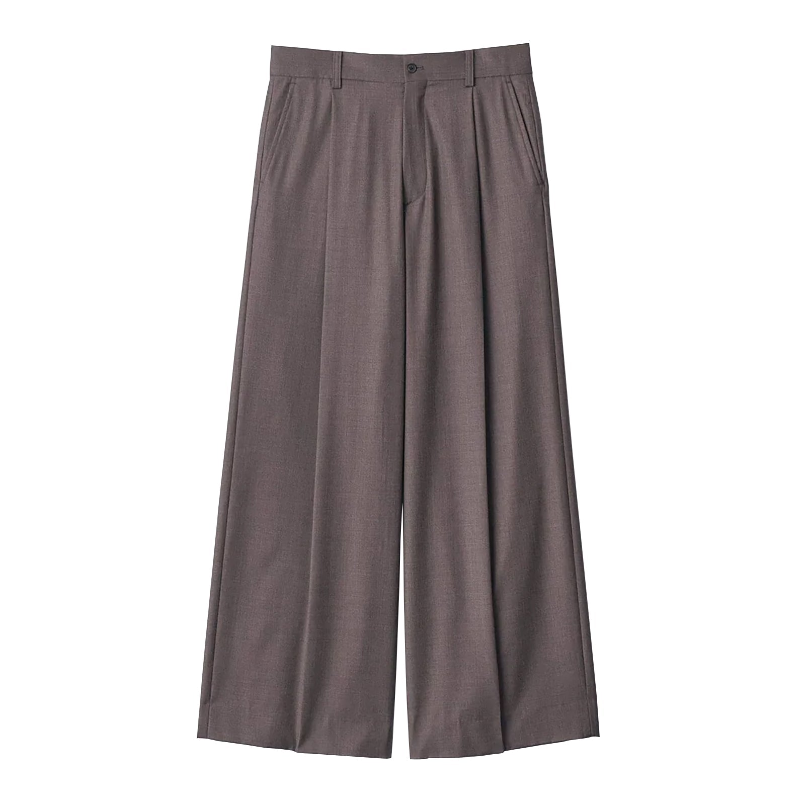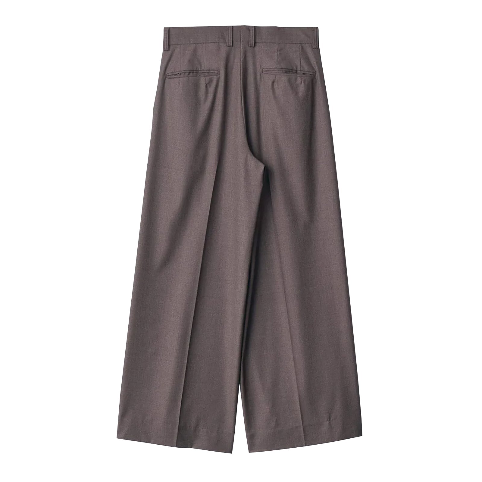 わたり幅から裾幅までスーパーワイドに設定した深めのワンタックトラウザーズ。 腰回りはすっきりとしたフィット感になるよう調整し、ワイドなシルエットながら上品な、エレガントなバランスに仕上がっている。