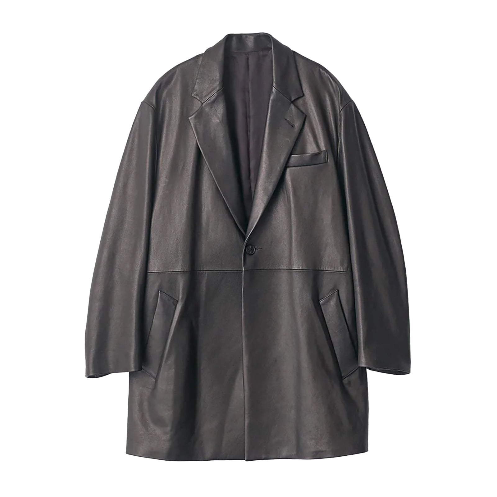 植物由来のタンニン剤を使用したラムレザーを使用したハーフ丈コート。 襟裏にはカウヌバックを施し、素材感のコントラストを出している。 革本来の味を楽しめるよう表面の仕上げを最小限にしており、着込む程に柔らかくなっていく。