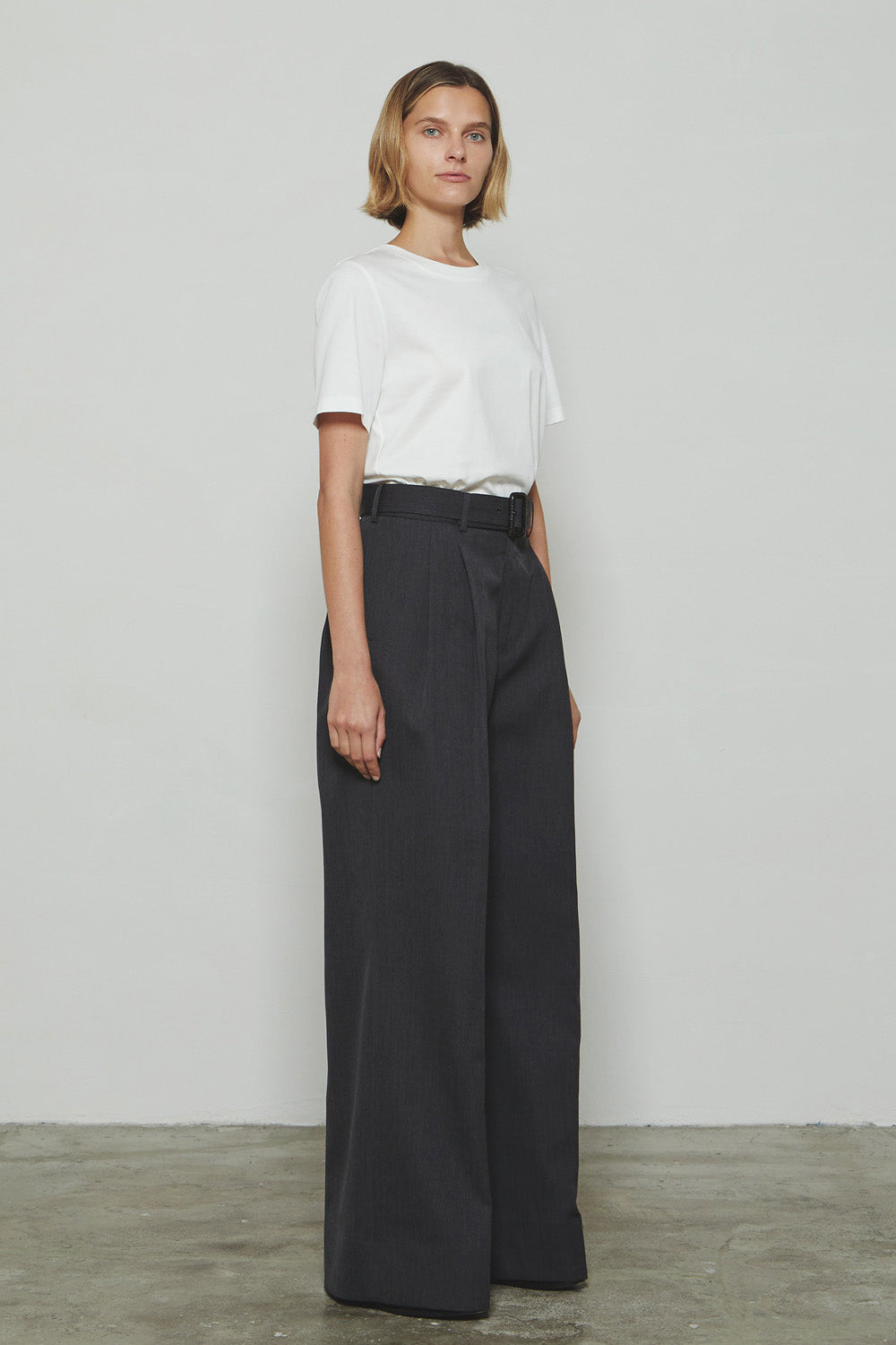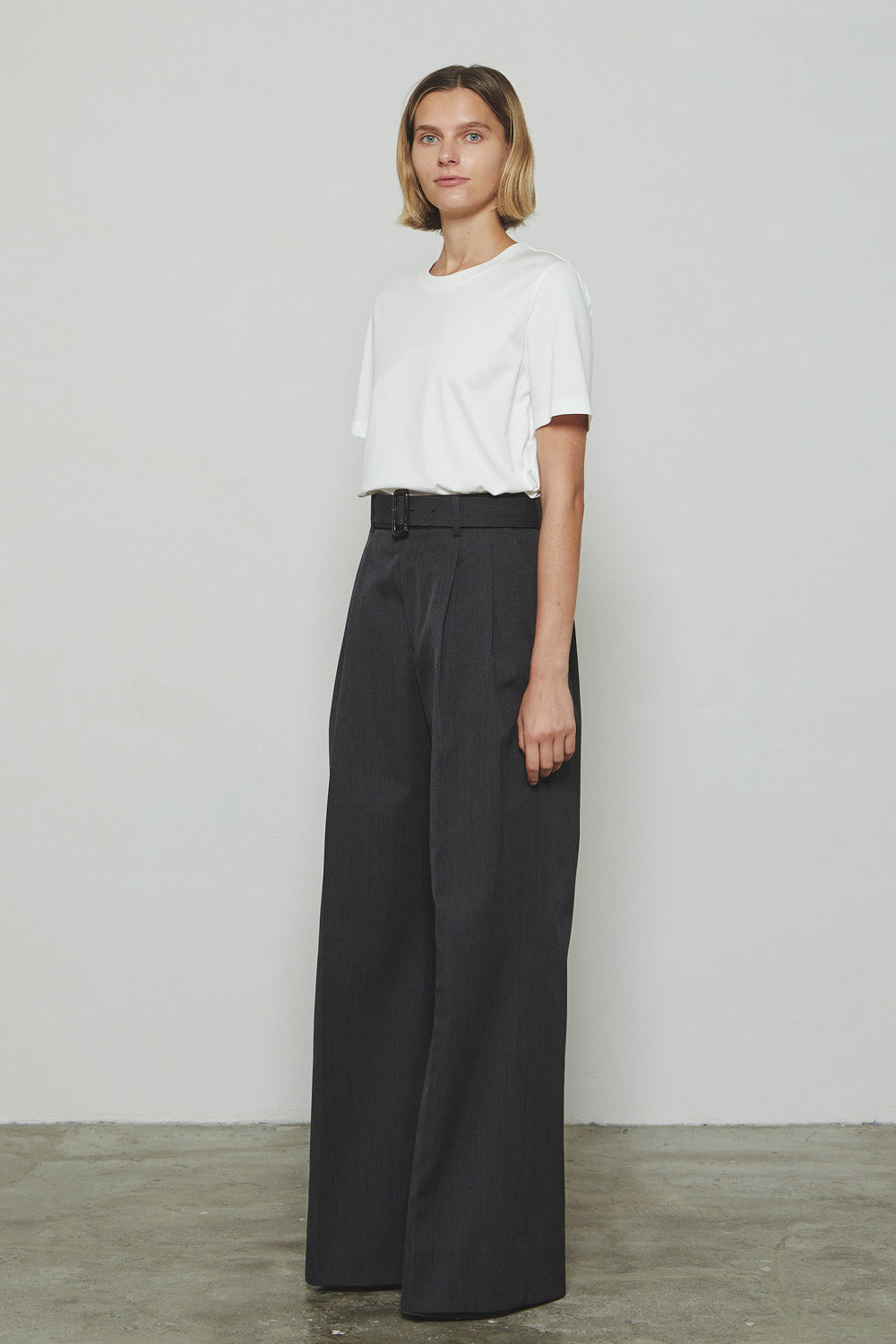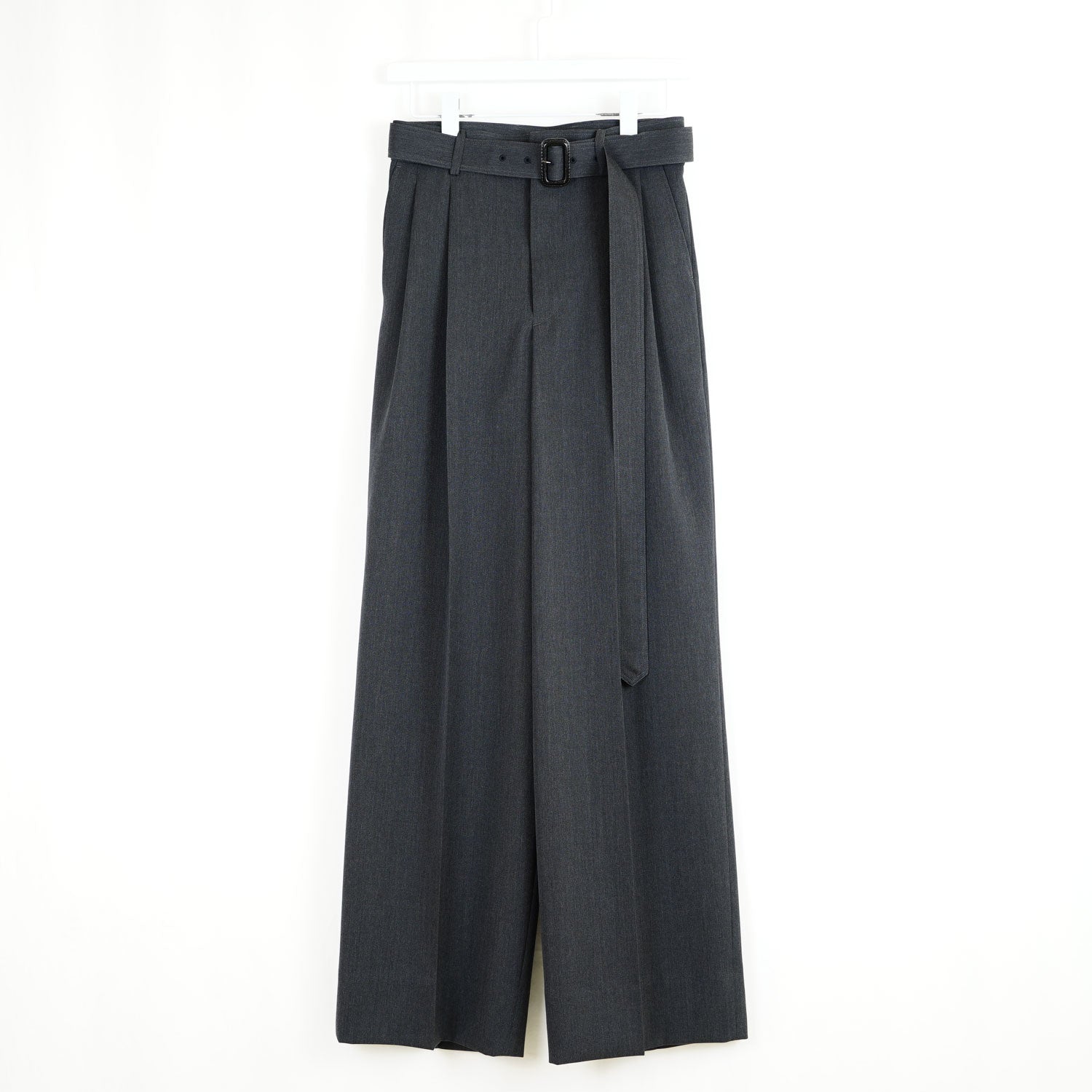 メリノウールギャバジン素材を使用したワイドストレートスラックス。フロントには2タックを入れ、構築的なデザインを施すことで、腰回りに程よいゆとりを持たせつつ、裾に向かって直線的に落ちるダイナミックなシルエットを実現しています。同素材のベルトを合わせることで、全体に統一感を持たせ、アイテムにアクセントを加えるとともに、スタイリングに洗練された印象をプラスします。立体的なラインが特徴的で、着る人の動きに合わせてダイナミックに広がり、スタイリングに個性を与えます。伝統的なディテールも施されており、THE RERACSならではの上品な仕上がりのワイドスラックスです。
