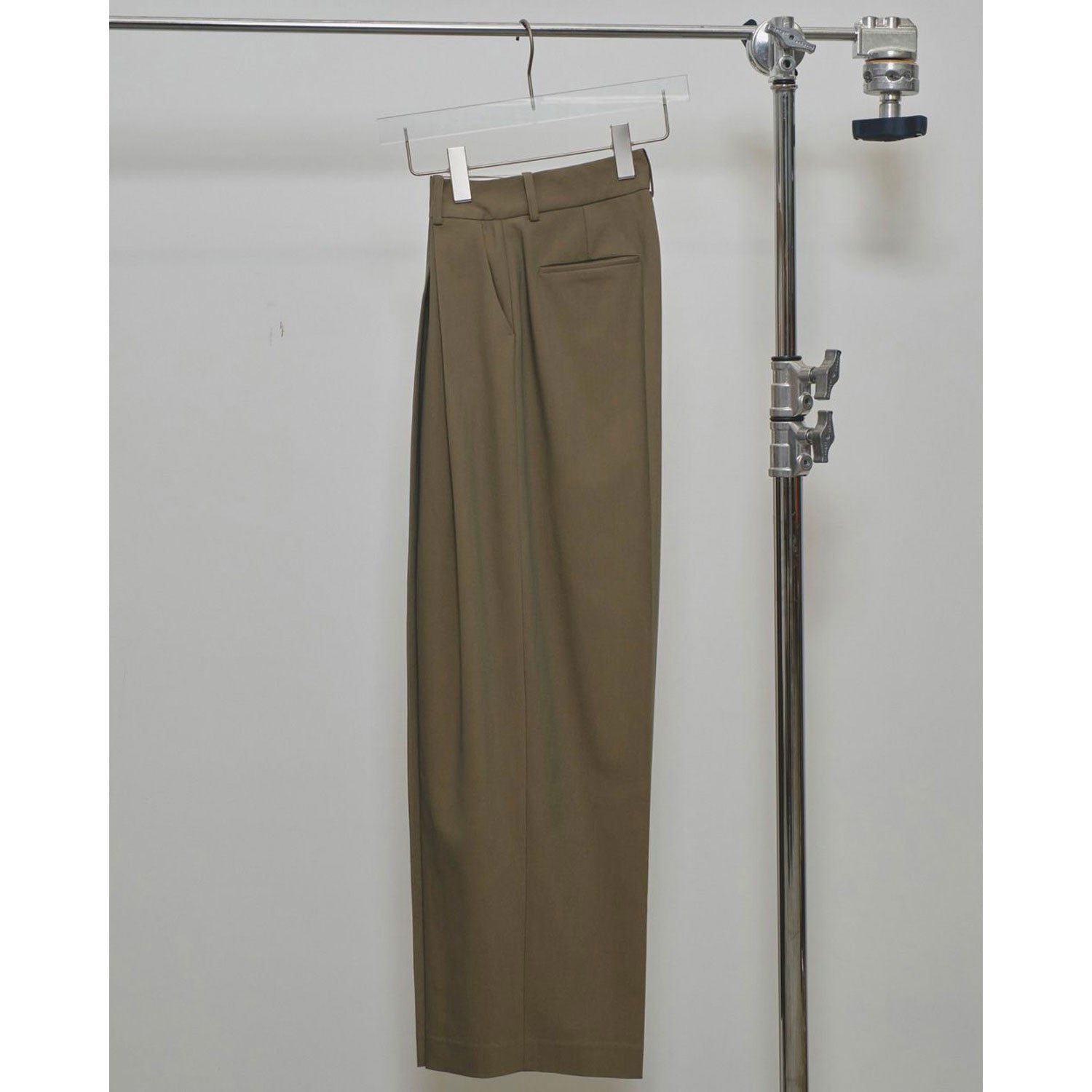 ほどよくハリのある上質なツイル生地を使用したトラウザーズ。Bonding Wide Trousers と同じシルエットとサイズ感で、春夏仕様であたらしく登場。深めのダブルタックとワイドなシルエットが魅力。表地と同色のパイピングを挟んだオリジナルマーベルトや、ステッチを表に出さない仕様がマニッシュな雰囲気でありながらも、どこか上品な印象に。