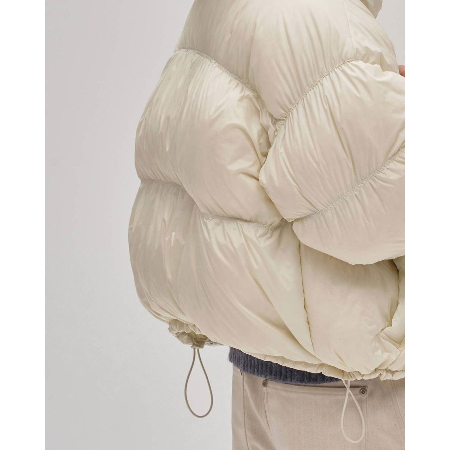ふんわりとしたボリューム感と、圧倒的な軽さ・保温性を兼ね揃えた今季一押しのグースダウンジャケット。軽快な着心地で寒い季節のデイリーアウターとして活躍します。丸みのあるシルエットやギャザーを効かせた切り替えライン、同色でまとめたディテールが、上品さと快適さを引き立たせる一枚です。