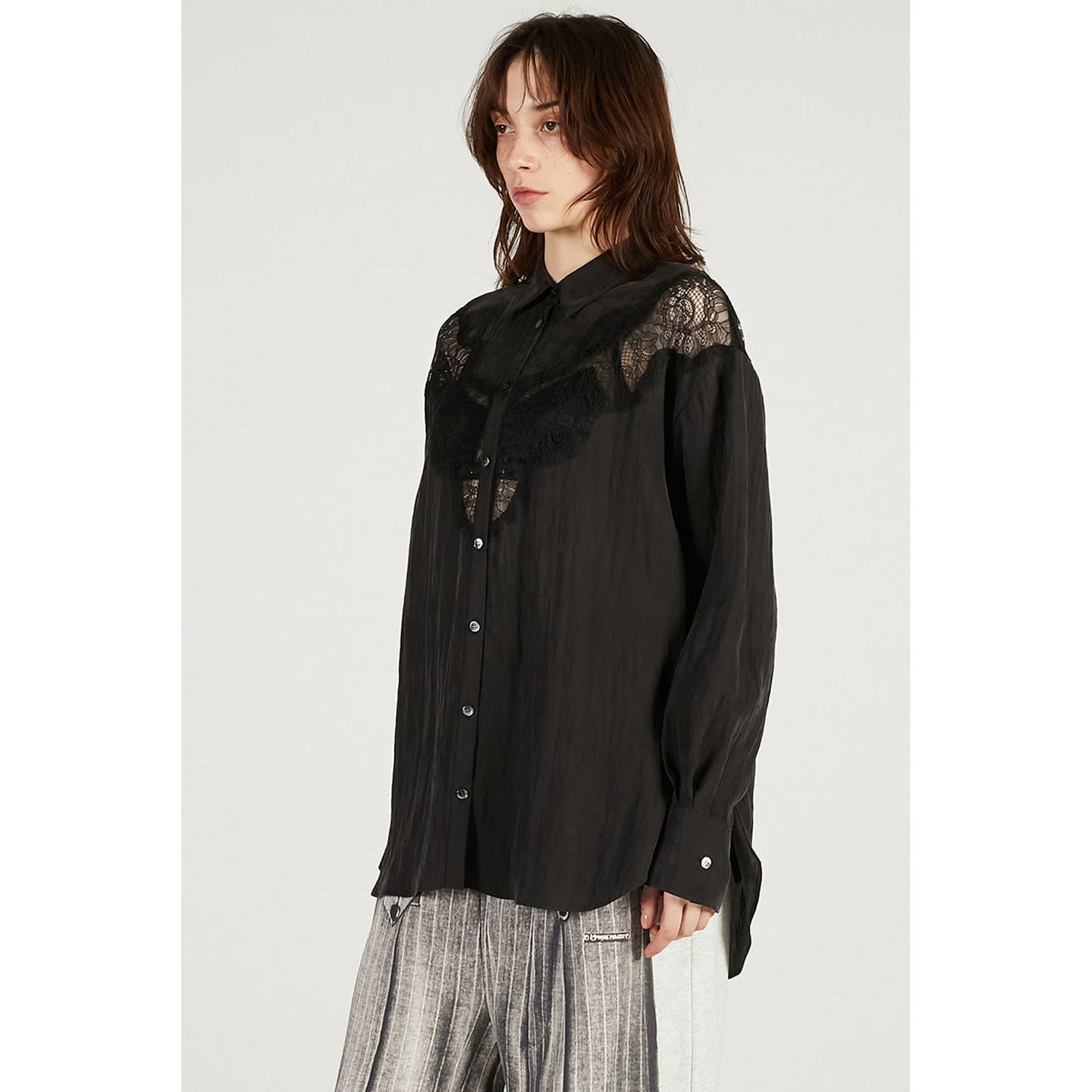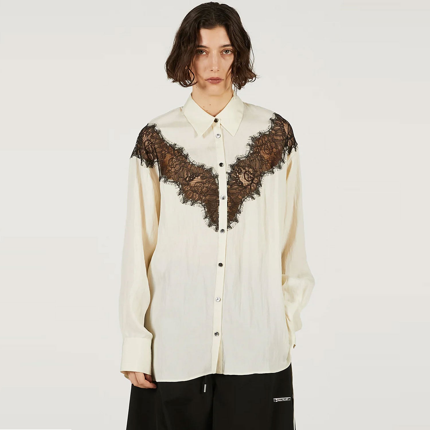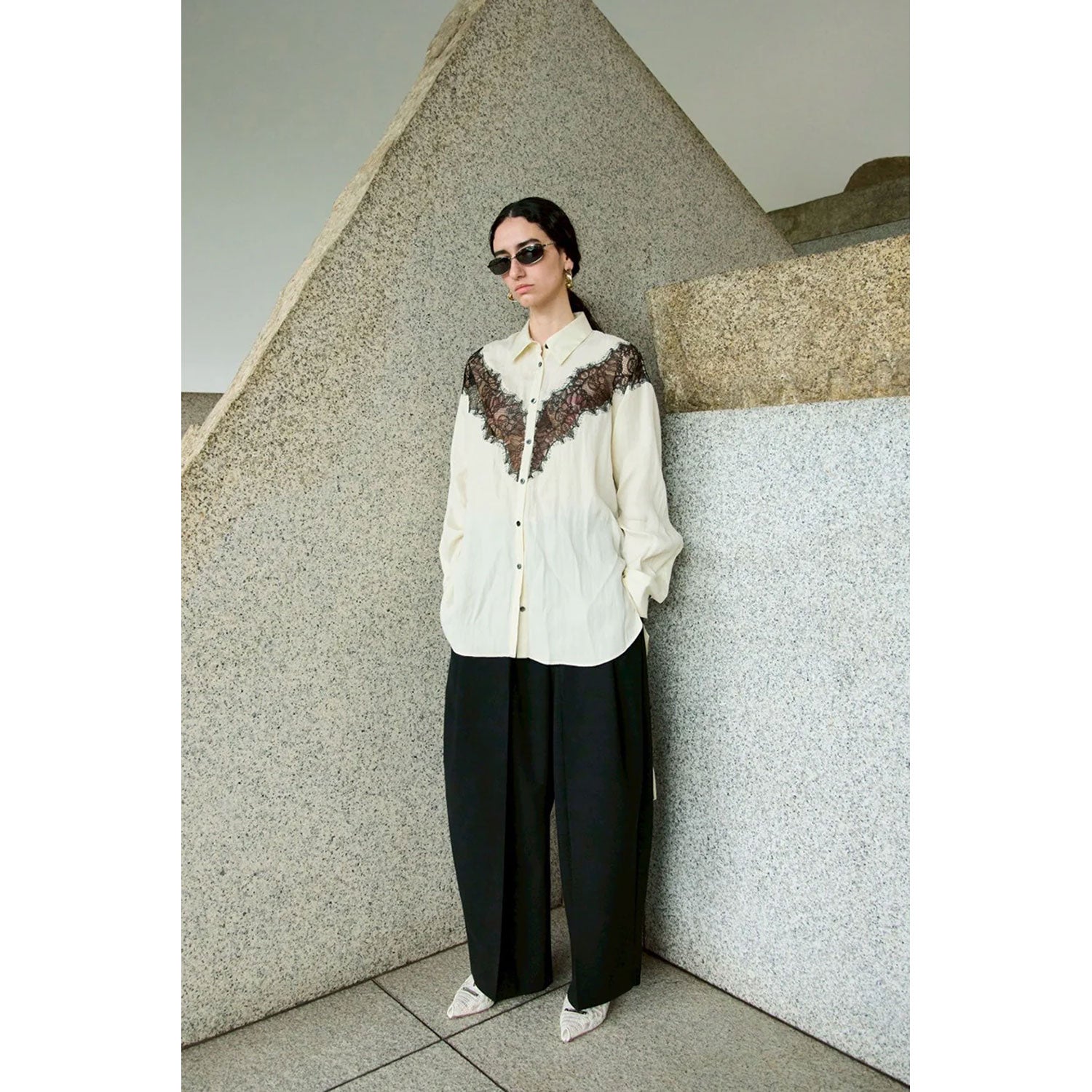 胸元のレースがエレガントなムードを引き出しインパクトのあるアイテム。