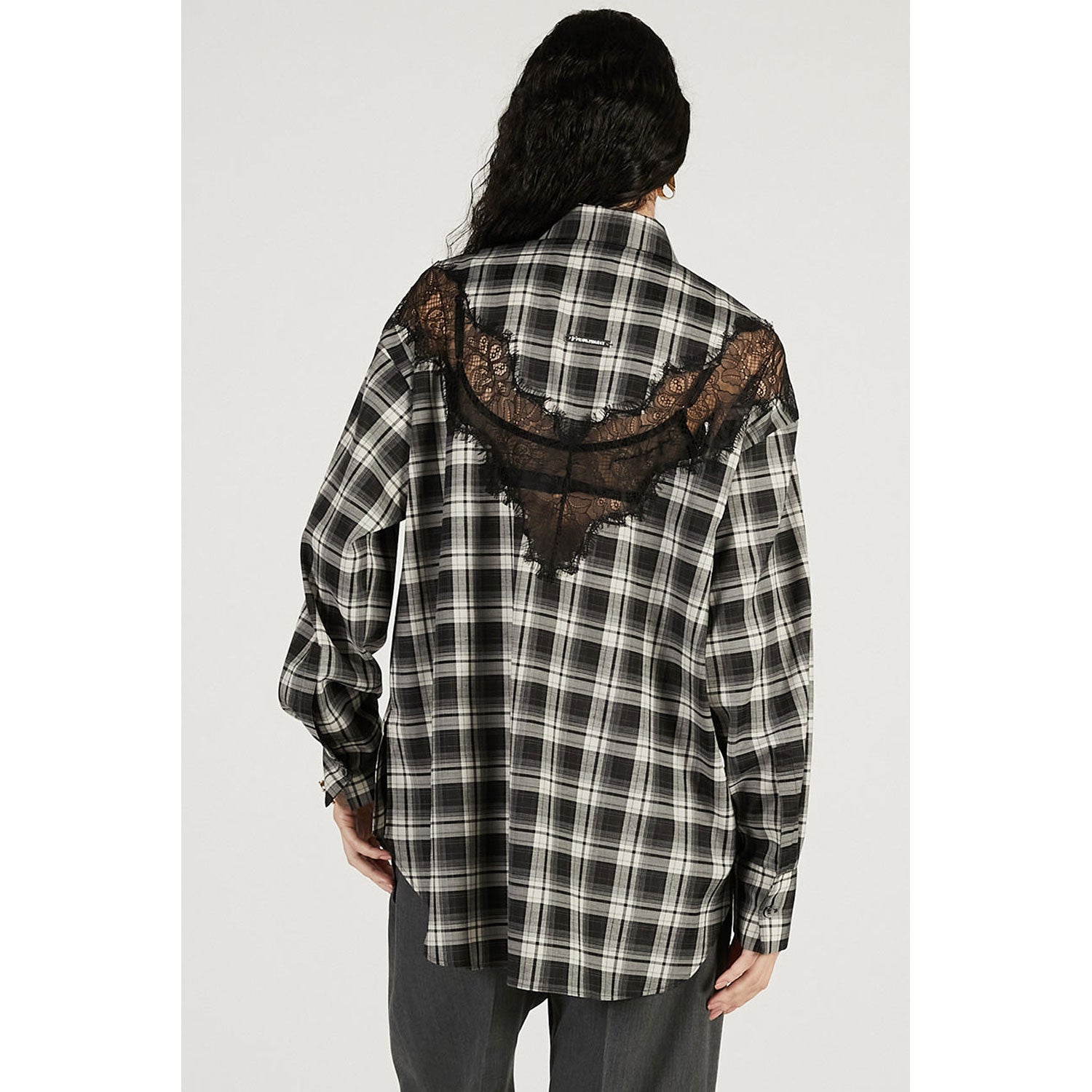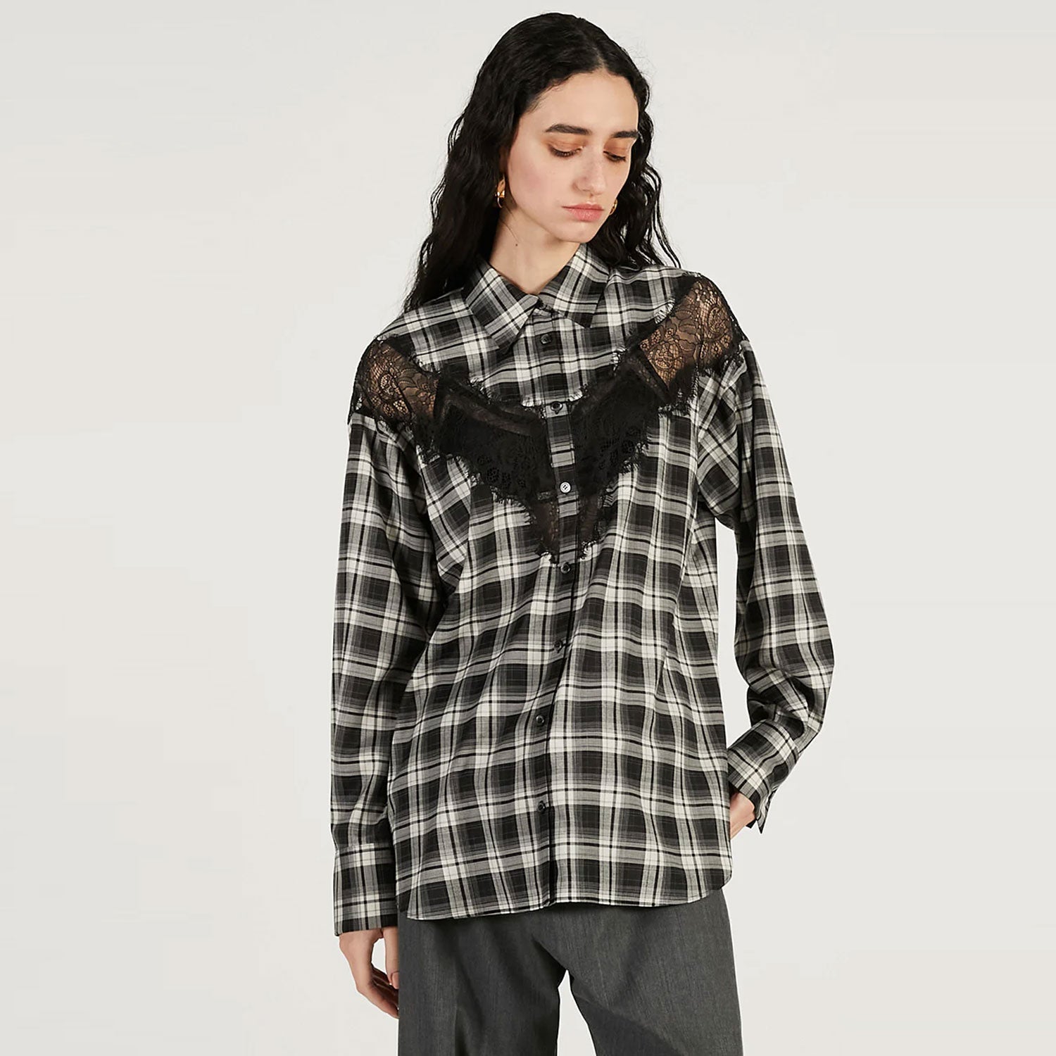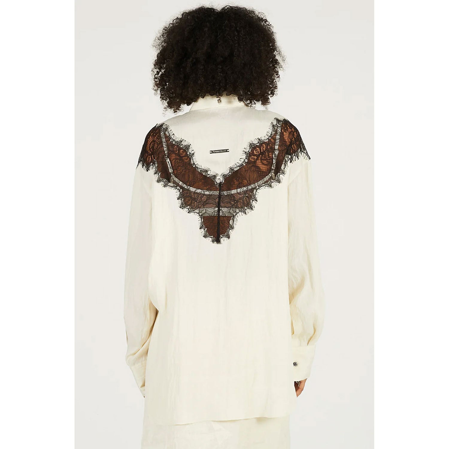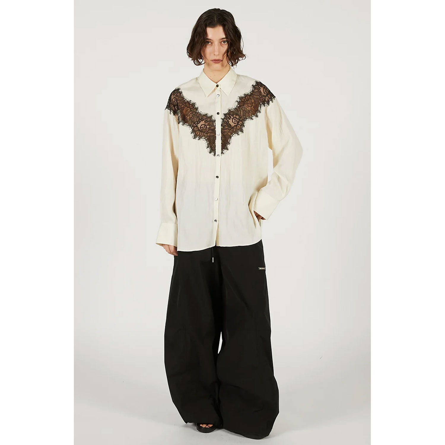 胸元のレースがエレガントなムードを引き出しインパクトのあるアイテム。