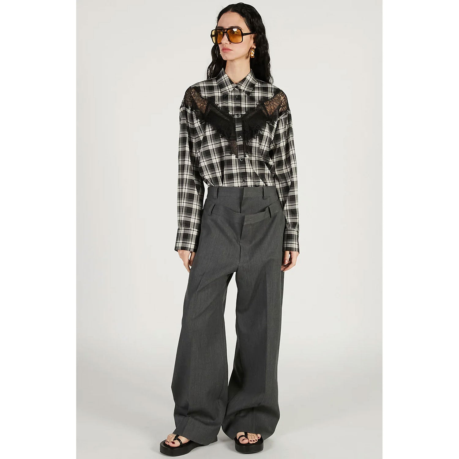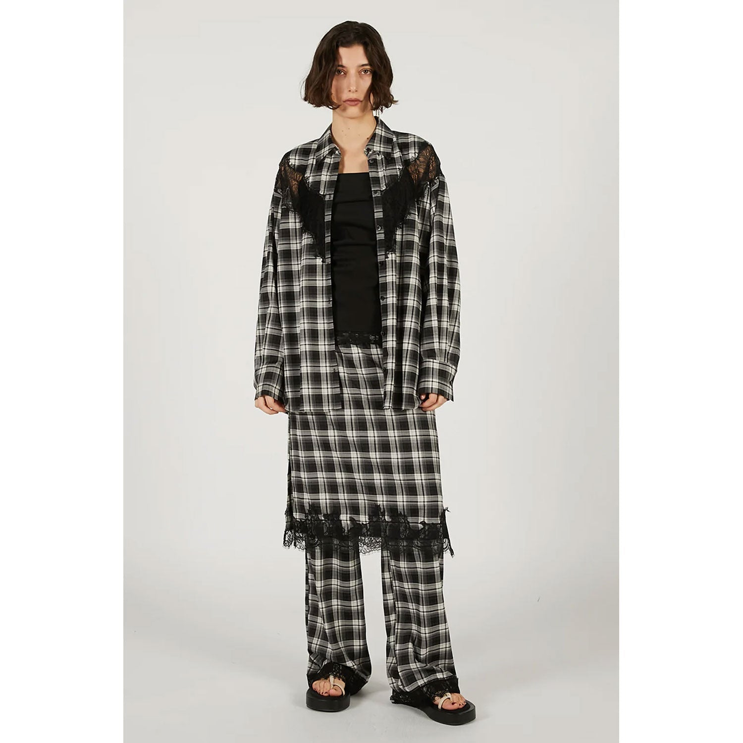 同素材のレイヤードパンツとセットアップでの着こなしはもちろん、デニムやスウェットパンツ、カプリショーツなどシンプルなボトムスに合わせても華やかな雰囲気に昇華してくれる。