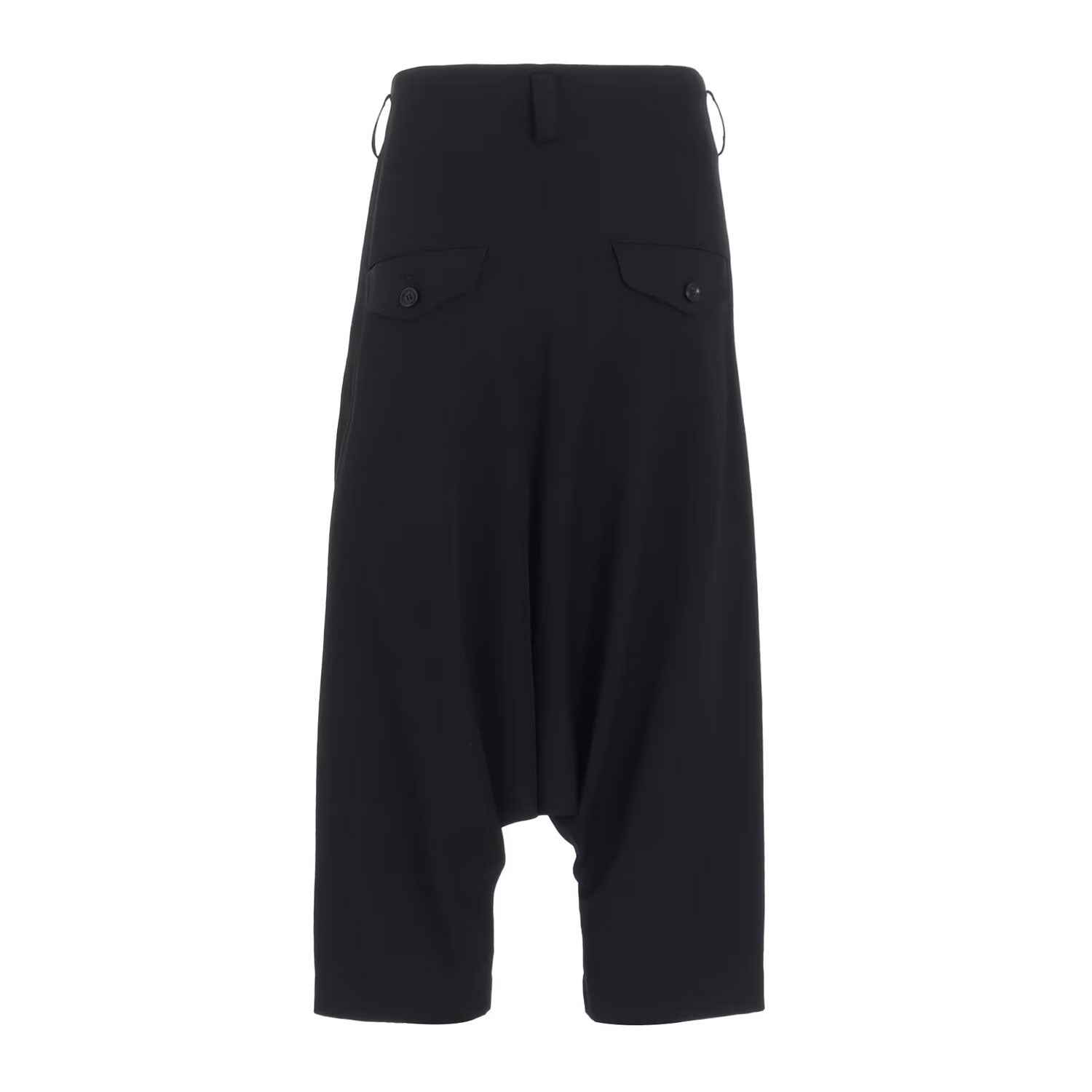 ワイズの代表的な素材、ウールギャバジンを使用した2タックサルエルパンツ。生地の仕上げ工程で織物に軽くシワやシボを付け、ウール本来の風合いに仕上げています。ベルトをしめて穿くワイドなシルエット。裾をまくり、少し短めにお召しいただくくのもおすすめです。