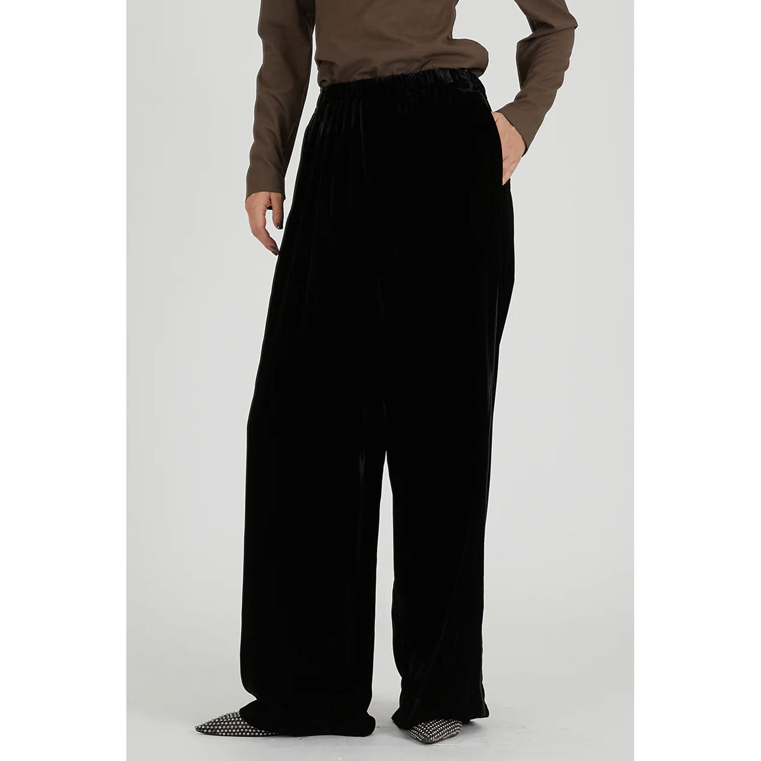 ウエスト全周ゴム仕様でストレスフリーな履き心地のワイドパンツ。