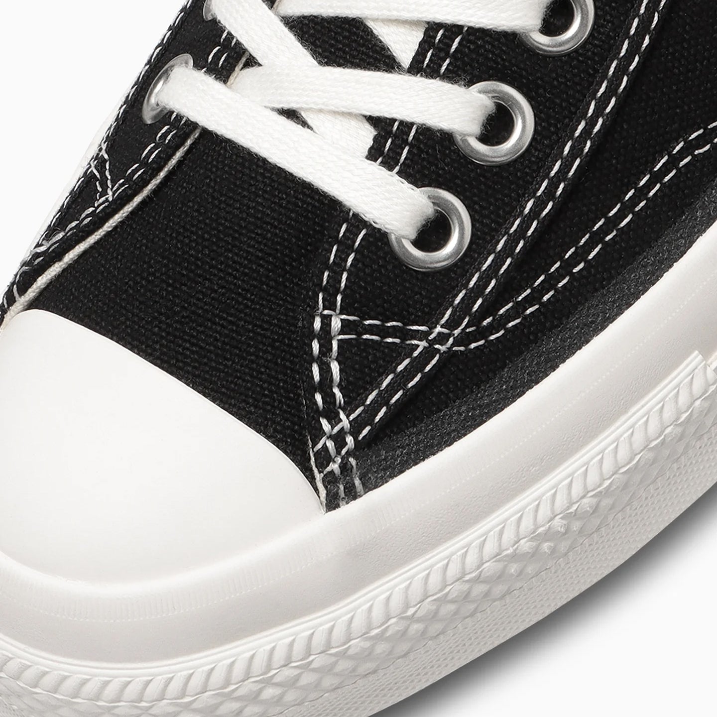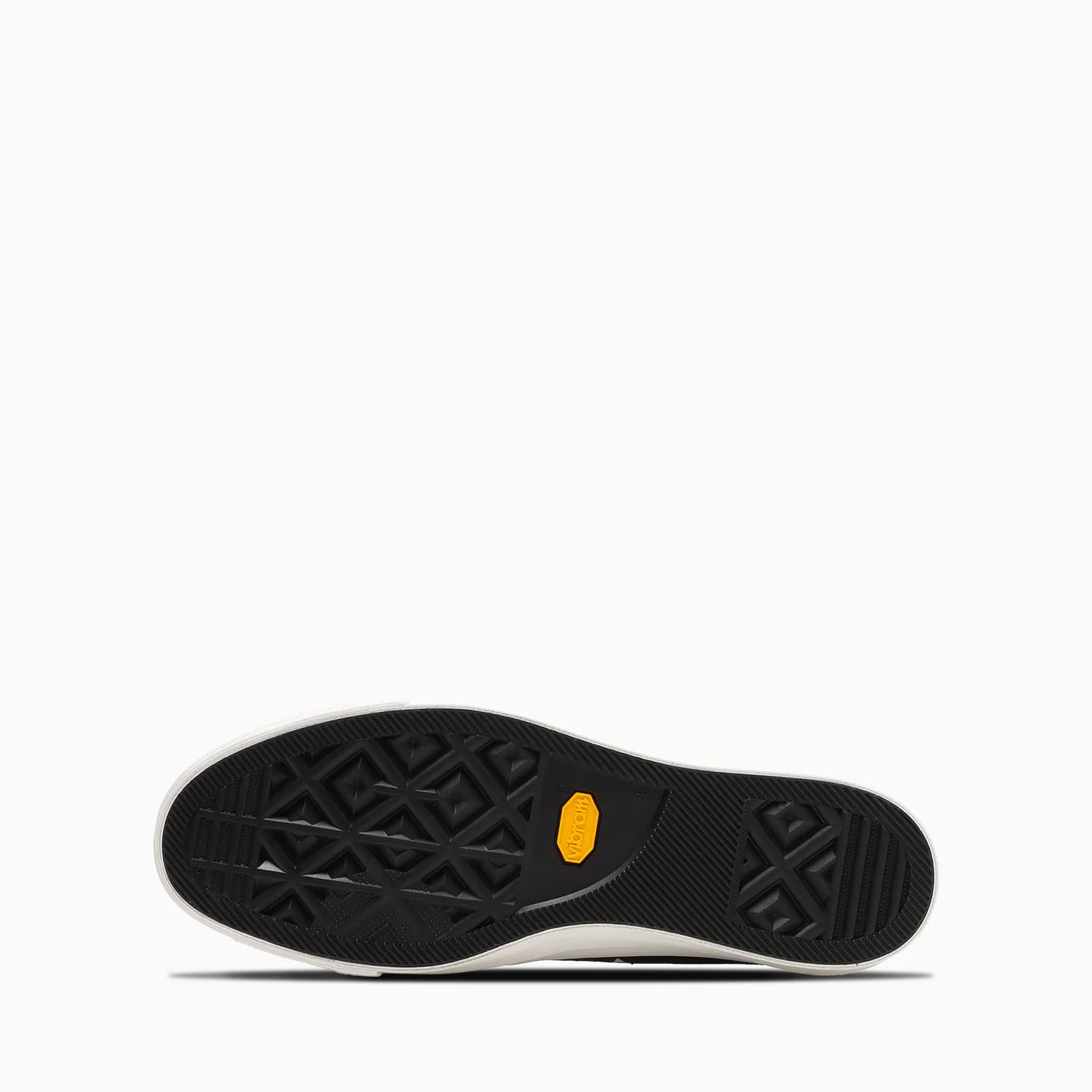 CONVERSE ADDICTの2025 HOLIDAY COLLECTION。1979年に登場した銘品「ALL STAR CANVAS Ⅱ」をモチーフに、当時のディテールを再現しながら、履き心地などを進化させたADDICTならではの1足。アッパーには国産シャトル織り機で紡いだ風合い豊かなキャンバスを使用。フロッキープリントのCHEVRON & STAR マーク、サイドステッチ部分の当て布、ソールの糊のはみ出しなど当時のディテールを再現。クッション性に優れたE.V.A.と「PORON®」の2重構造に加え、安定した歩行をサポートするTPUシャンクを組み合わせたカップインソール、防滑性と耐摩耗性に優れ全天候に対応した「HIGH PERFORMANCE RUBBER COMPOUND」の「VIBRAM® MEGAGRIP」ソールなど、ハイスペックな機能を搭載し快適な履き心地を実現。カラーはブラックの1カラー展開。