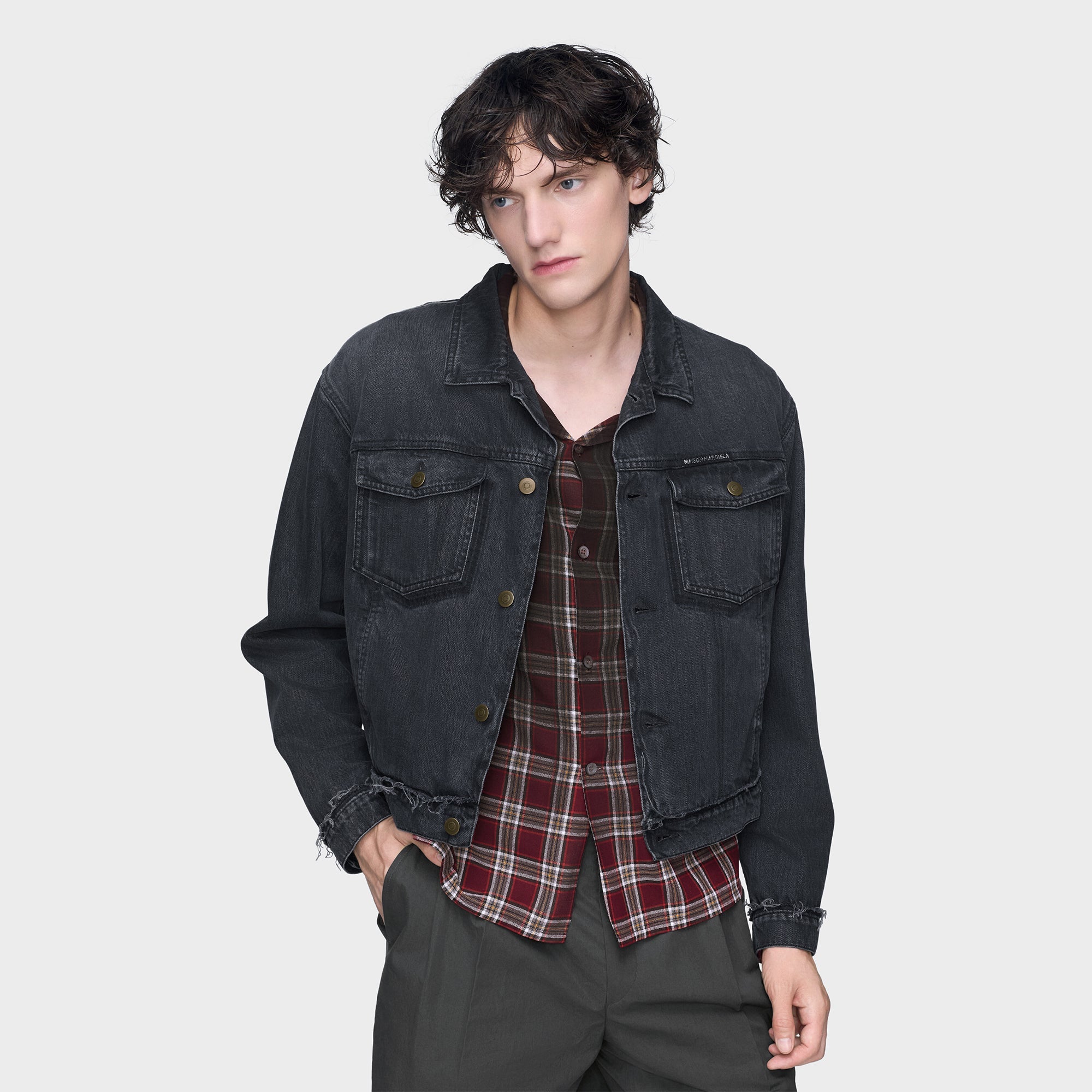 Maison Margielaによるウォッシュドブラックデニムのキャバンジャケット。