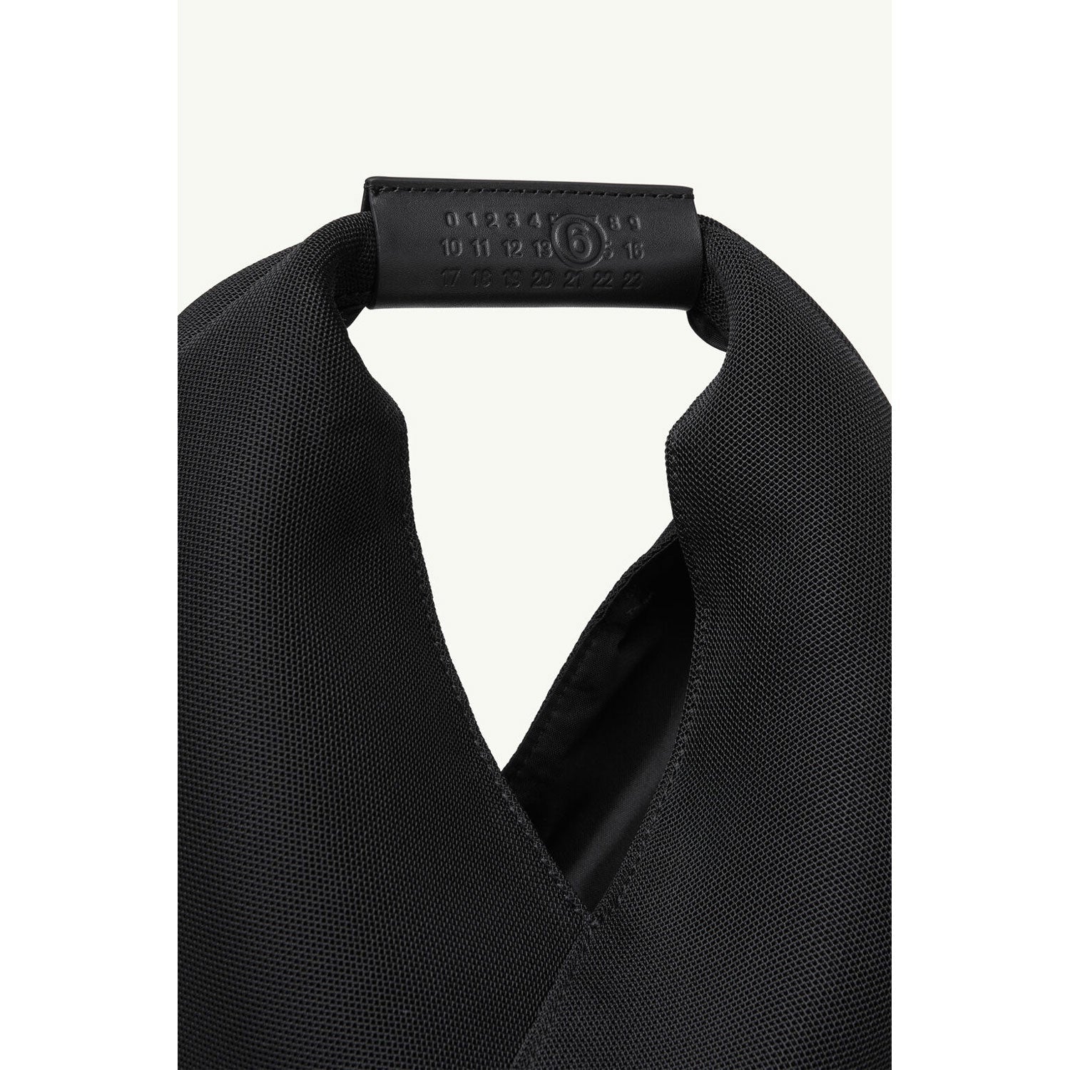 MM6のシグネチャーであるジャパニーズバッグを、通気性のあるメッシュ素材で再構築。建築的なフォルムに、現代的な軽やかさをプラスしたデザインです。トップハンドルにはエンボス加工のナンバリングアートワークがあしらわれ、メゾンのアイデンティティをさりげなく強調。折り紙に着想を得たシルエットはそのままに、意外性のある軽さと構築美を両立させています。