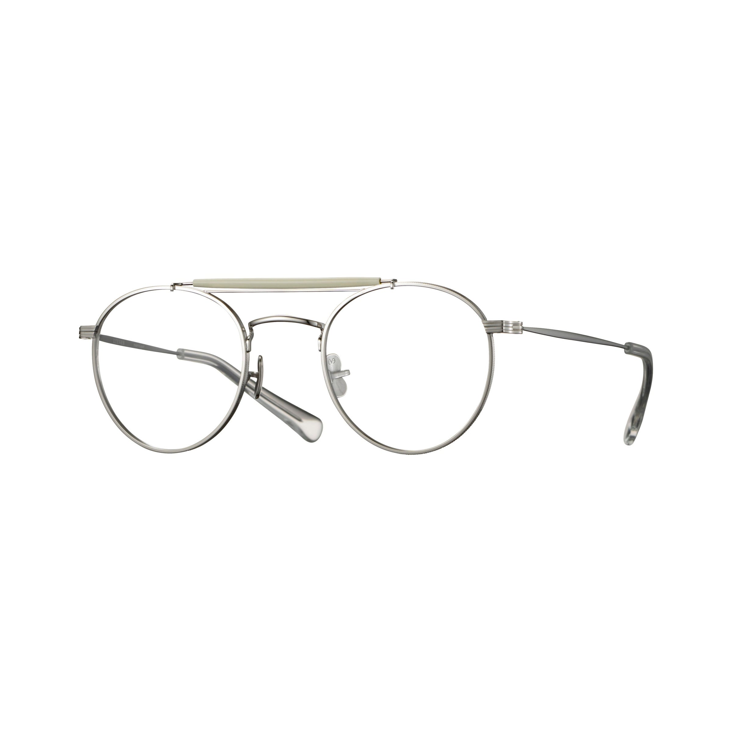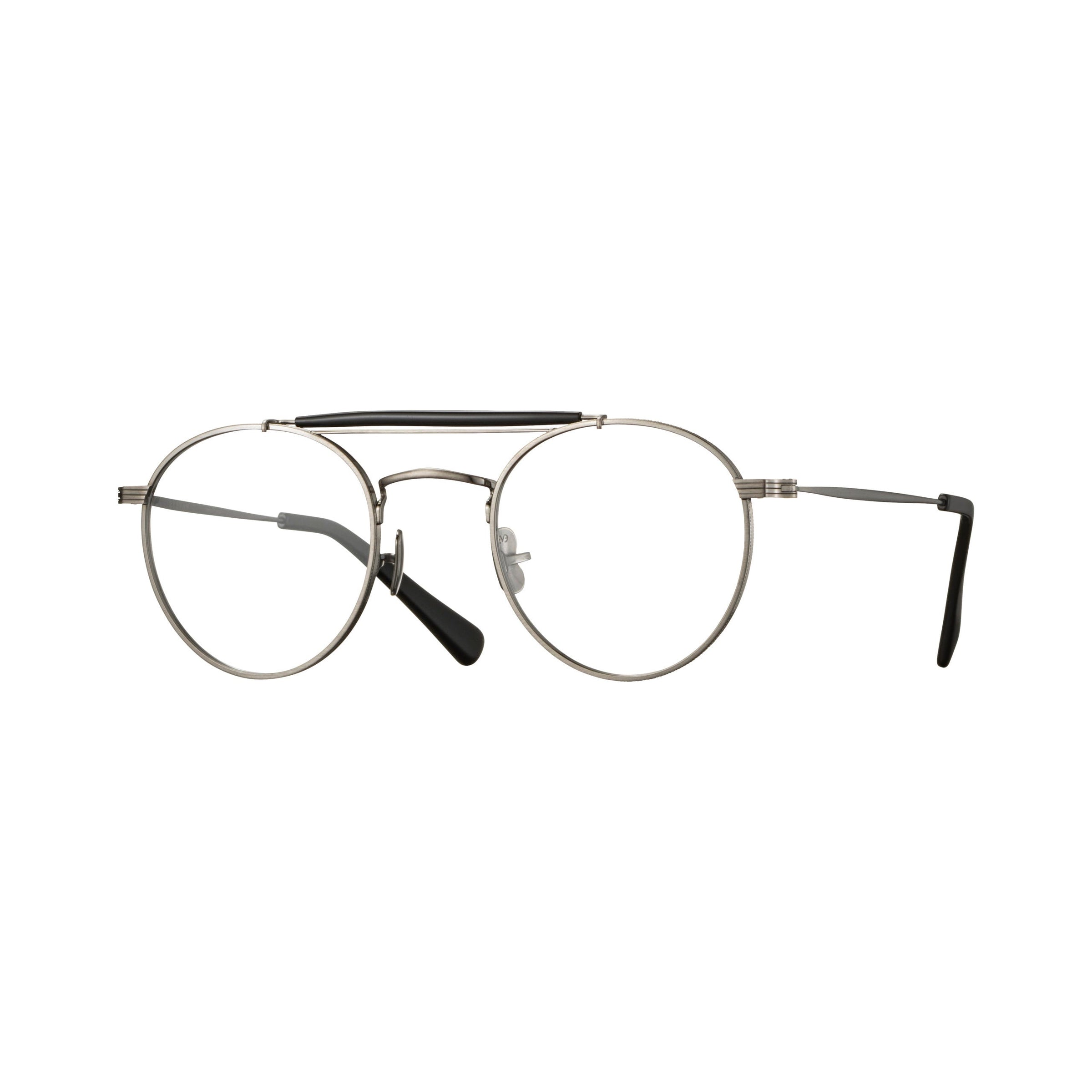 1980年代にメゾン系ファッションブ ランドからリリースされたヴィンテージフレームを着想源に、ミル模様とライン模様でデザインされたオリジナルリムによって現代的に再構築したモデル。通常より厚めに設計されたヨロイとわずかに起伏するテンプルはオリジナルリムのイメージにうよう新たにデザインされたもの。PADには23SSコレクションでリリースれたEYEVANのシンボリックなチタンクリングス一体型PADを採用。オーセンティックなボストンシェイプに1960年代のアメリカンヴィンテージからサンプリングしたトップバーを合わせたEYEVANらしいニューヴィンテージスタイルに仕上げた。