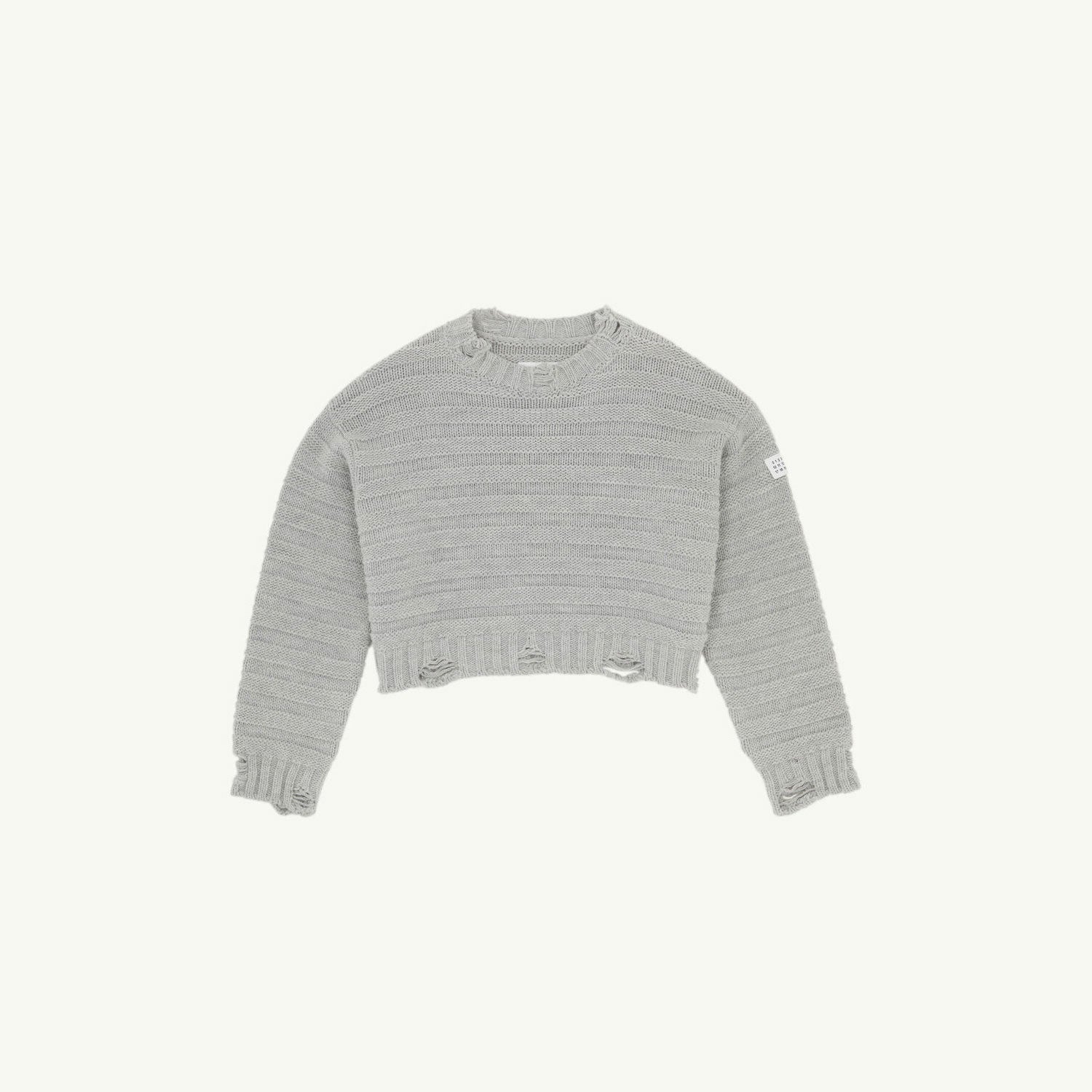 このブランドの型にはまらないアプローチは、ヴァージンウールとゲージ3の混紡糸を使用したセーターにも表れています、リドルニットでダメージ感を与え、ゆったりとしたオーバーサイズフィットに仕上げています。左袖にNumericシグネチャーのラベル。バックには、控えめながらはっきりとしたMM6のシグネチャー、1本の白いステッチのラインも施されています。